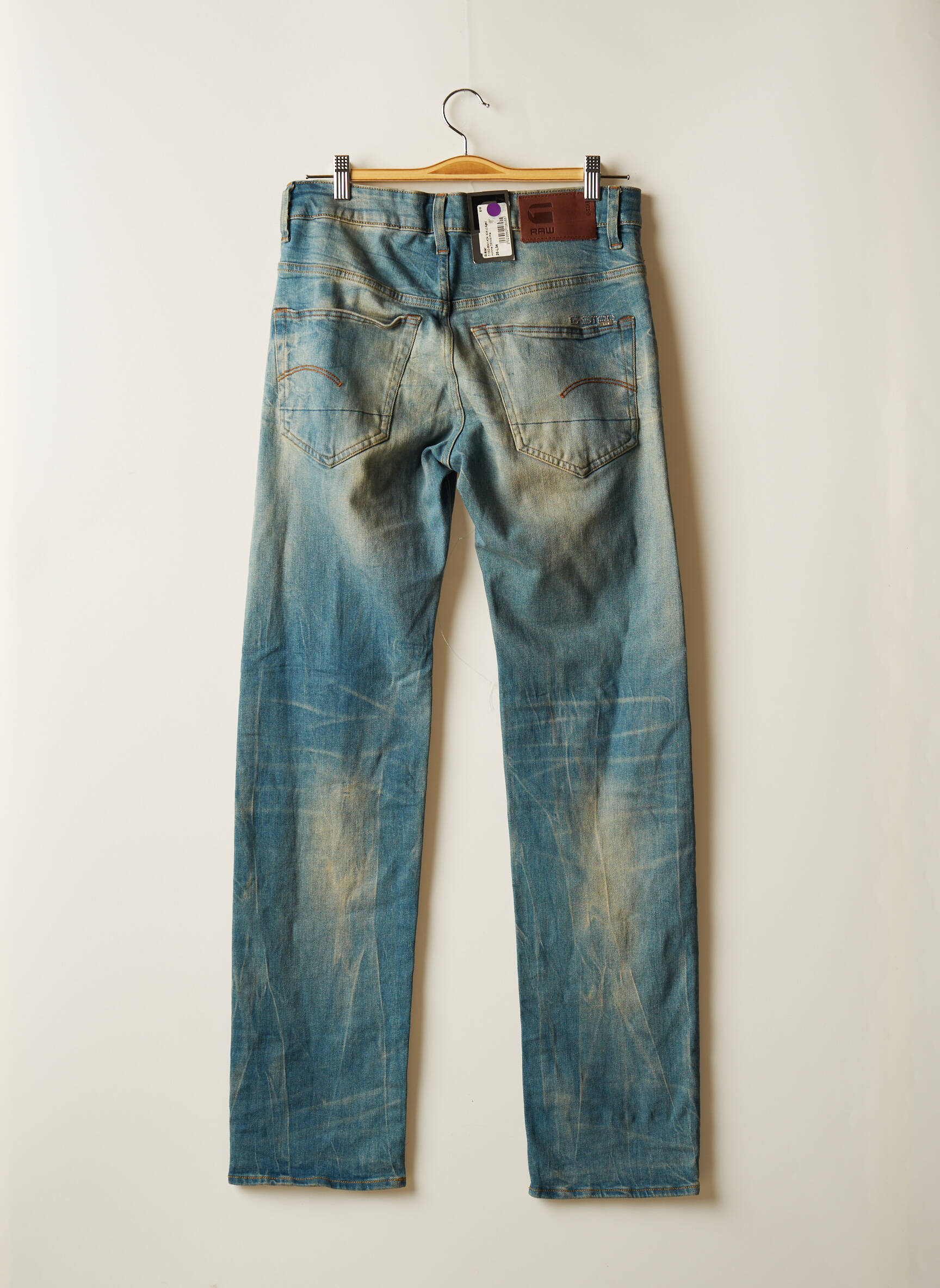 Blugi Cu Croială Dreaptă Raw-7 Albastru