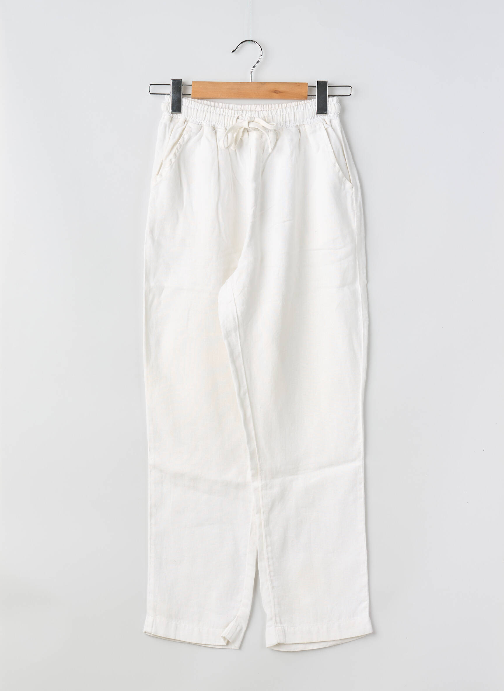 Pantalon Drept Puro Lino Alb Mărime Normală