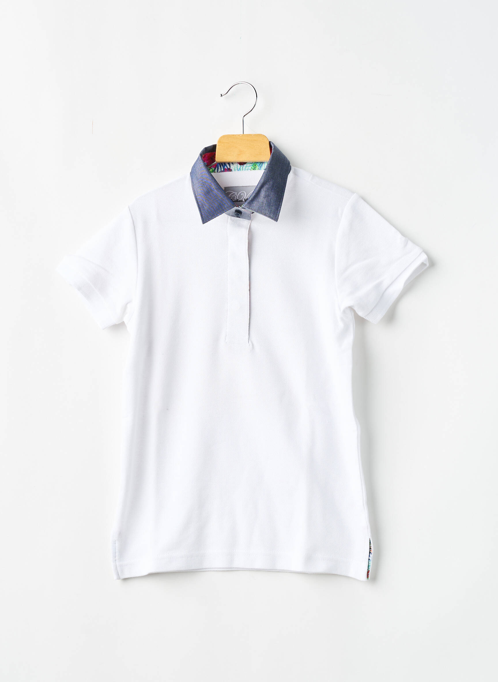 Polo Christian Valer Alb Mâneci Scurte
