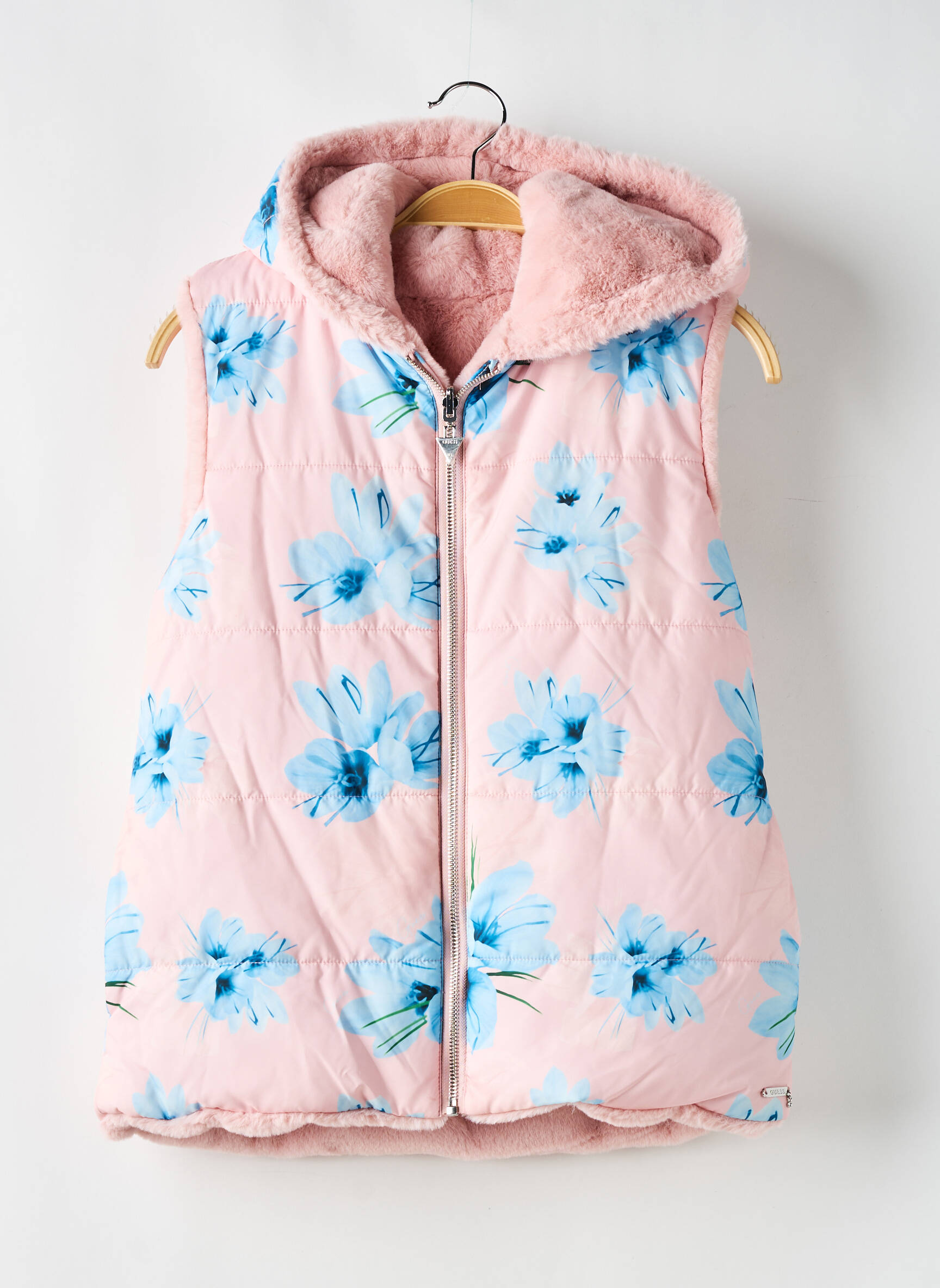 Geacă Matlasată Guess Roz Cu Glugă