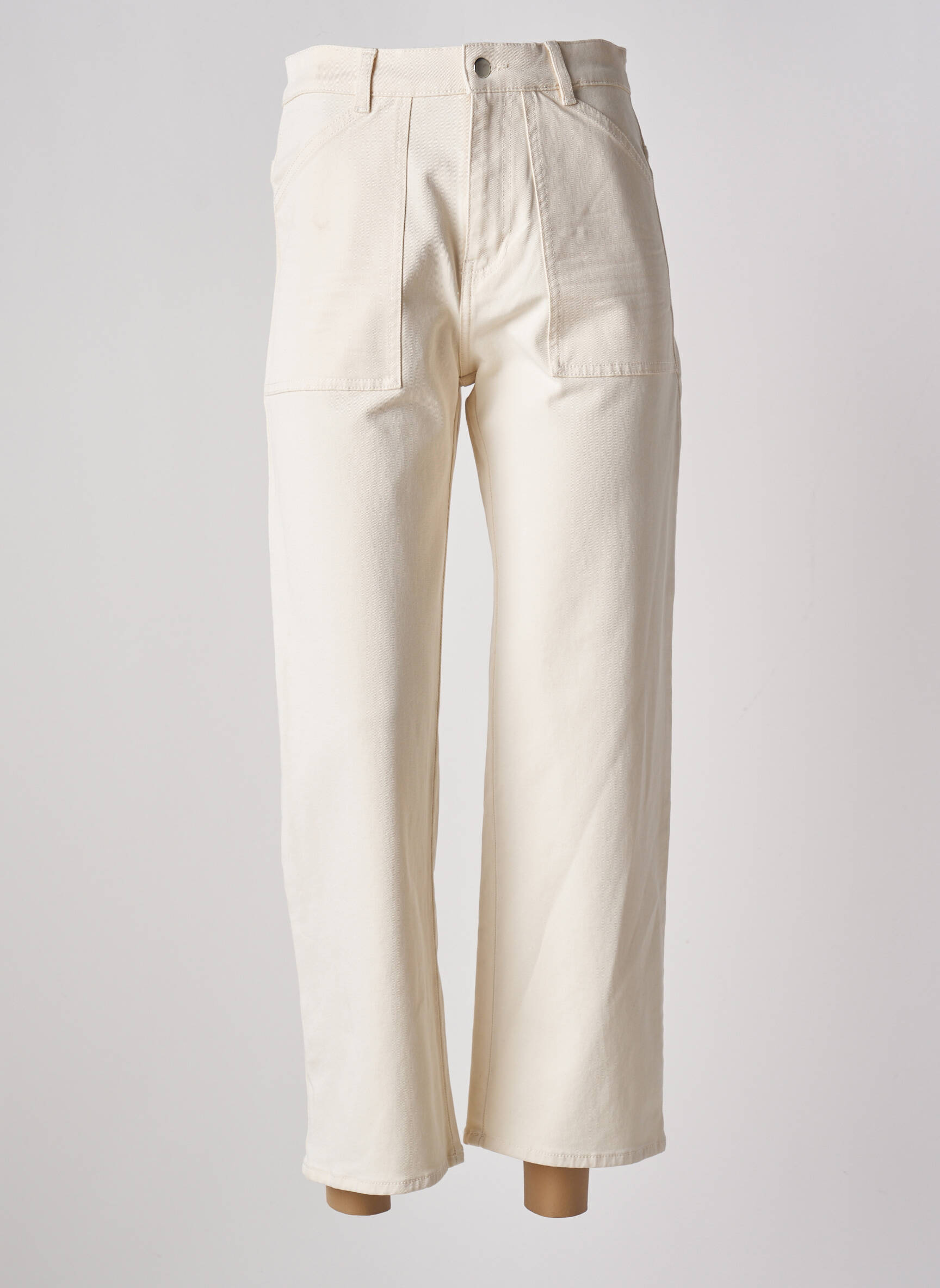 Blugi Cu Croială Dreaptă Acquaverde Bej Talie Înaltă