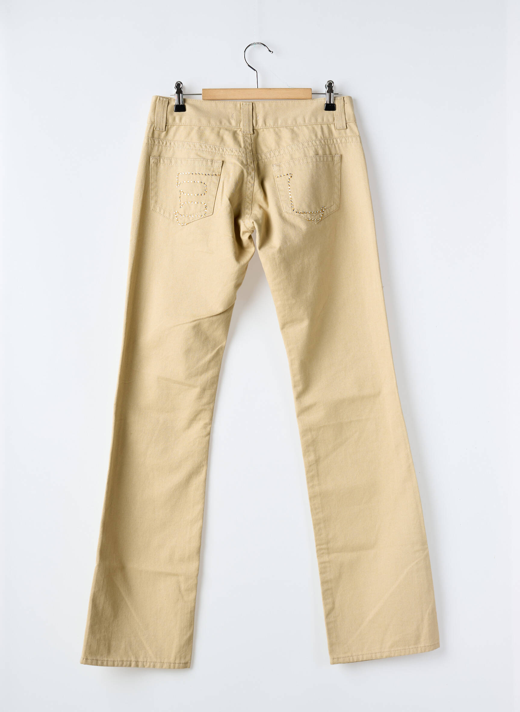 Blugi Cu Croială Dreaptă E&l Bej Talie Joasă