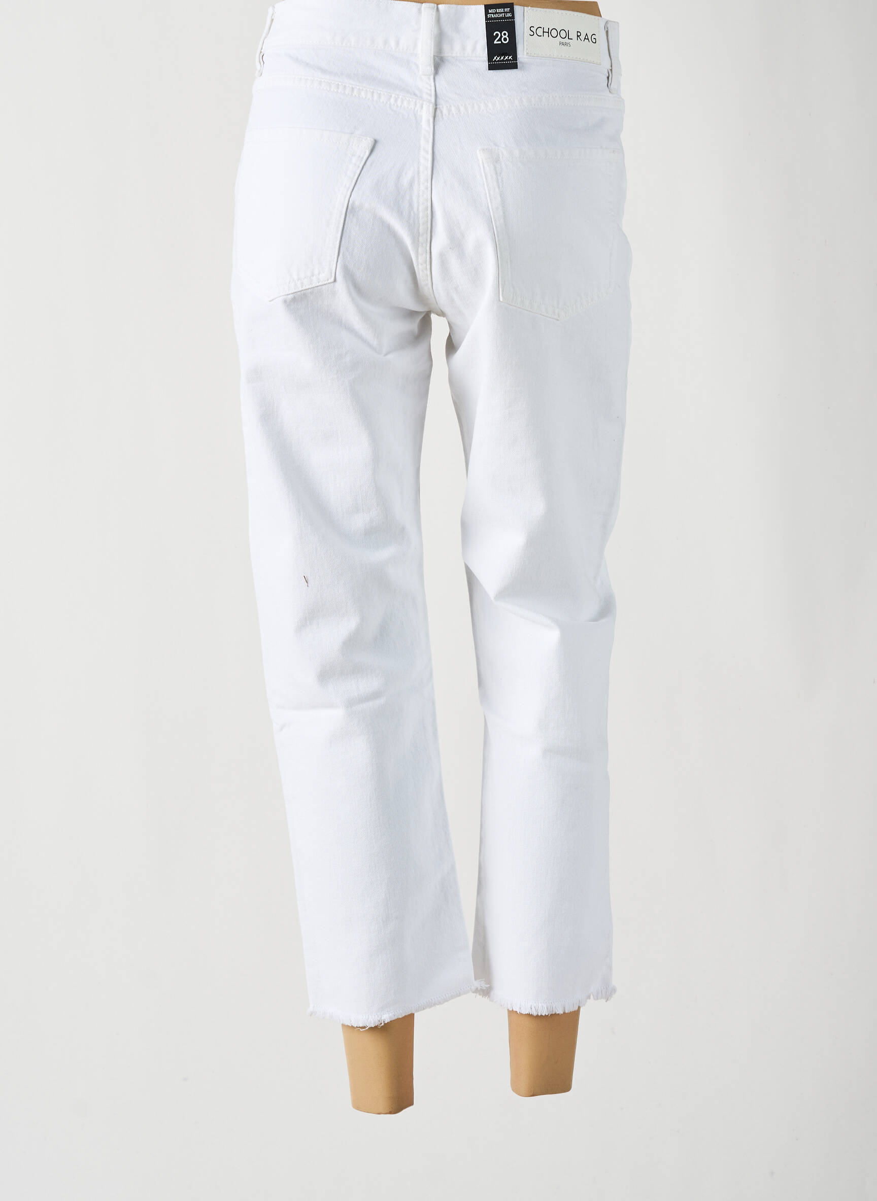 Blugi Cu Croială Dreaptă School Rag Alb Talie Înaltă