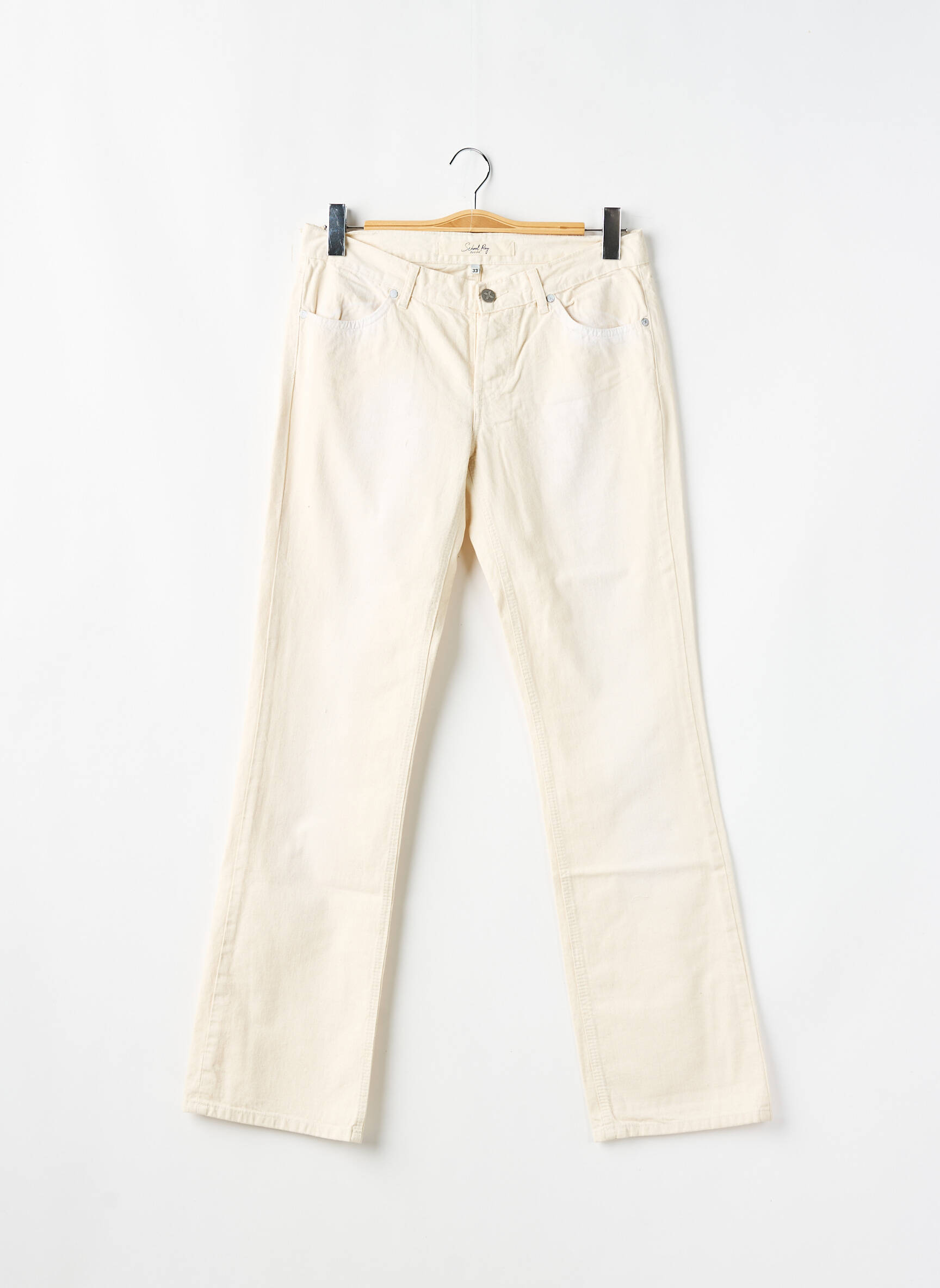 Blugi Cu Croială Dreaptă School Rag Bej Talie Joasă