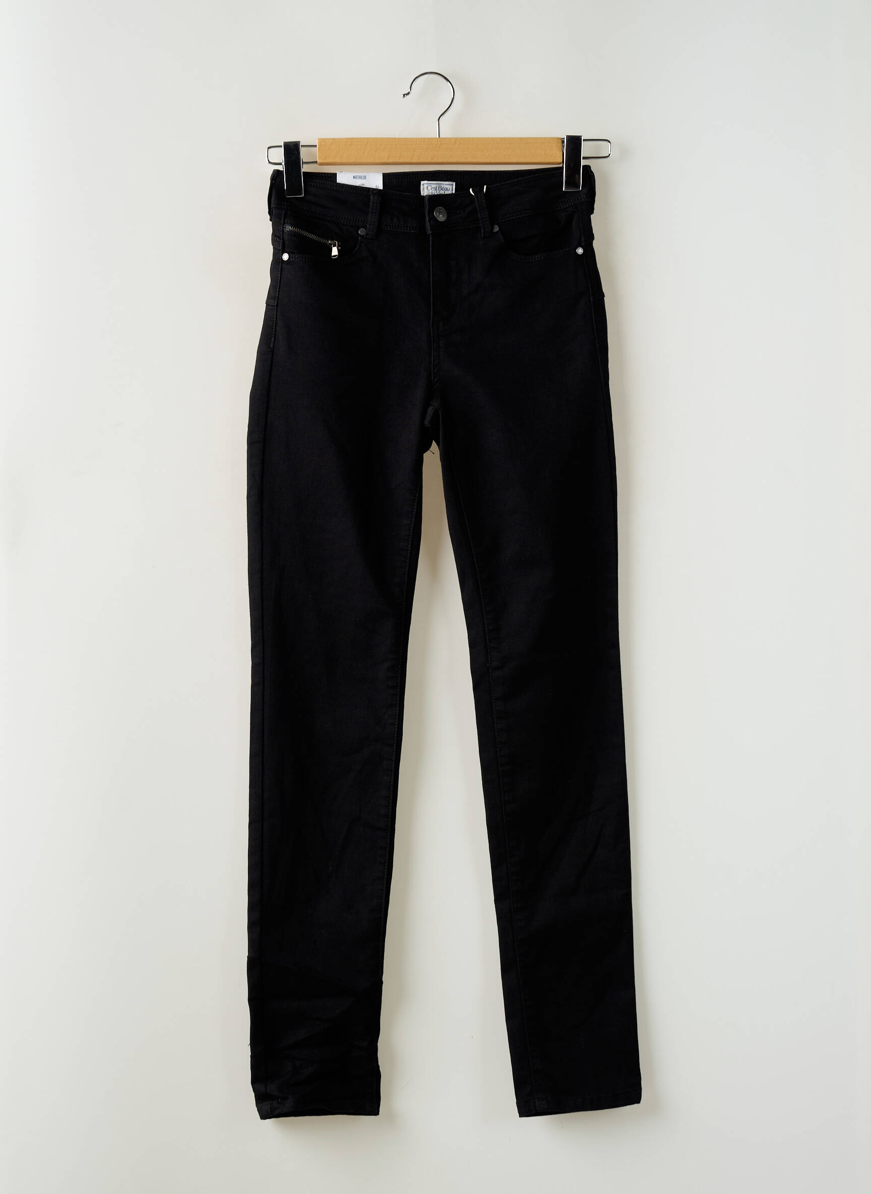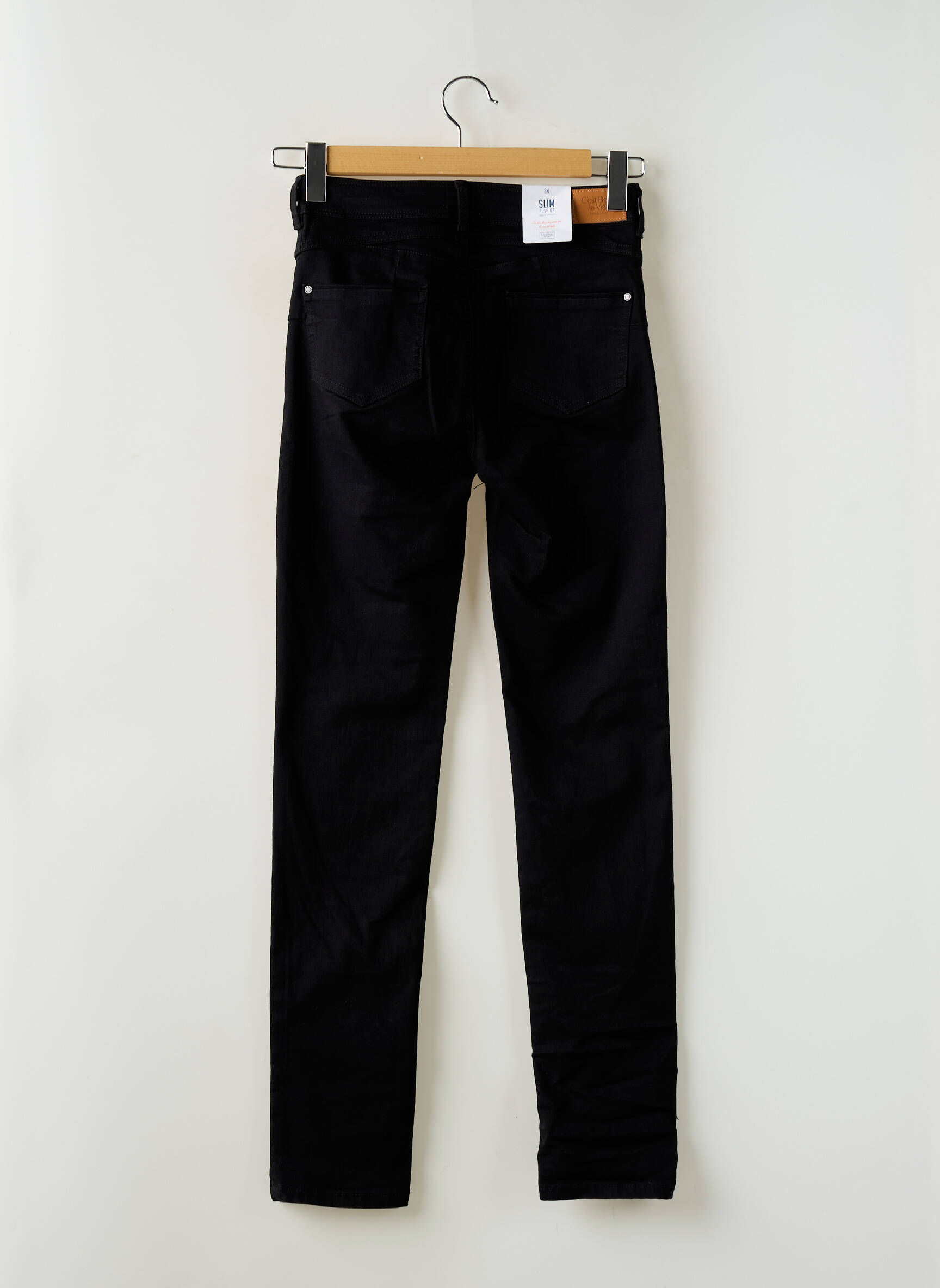 Blugi Cu Croială Slim C'est Beau La Vie Negru Talie Înaltă