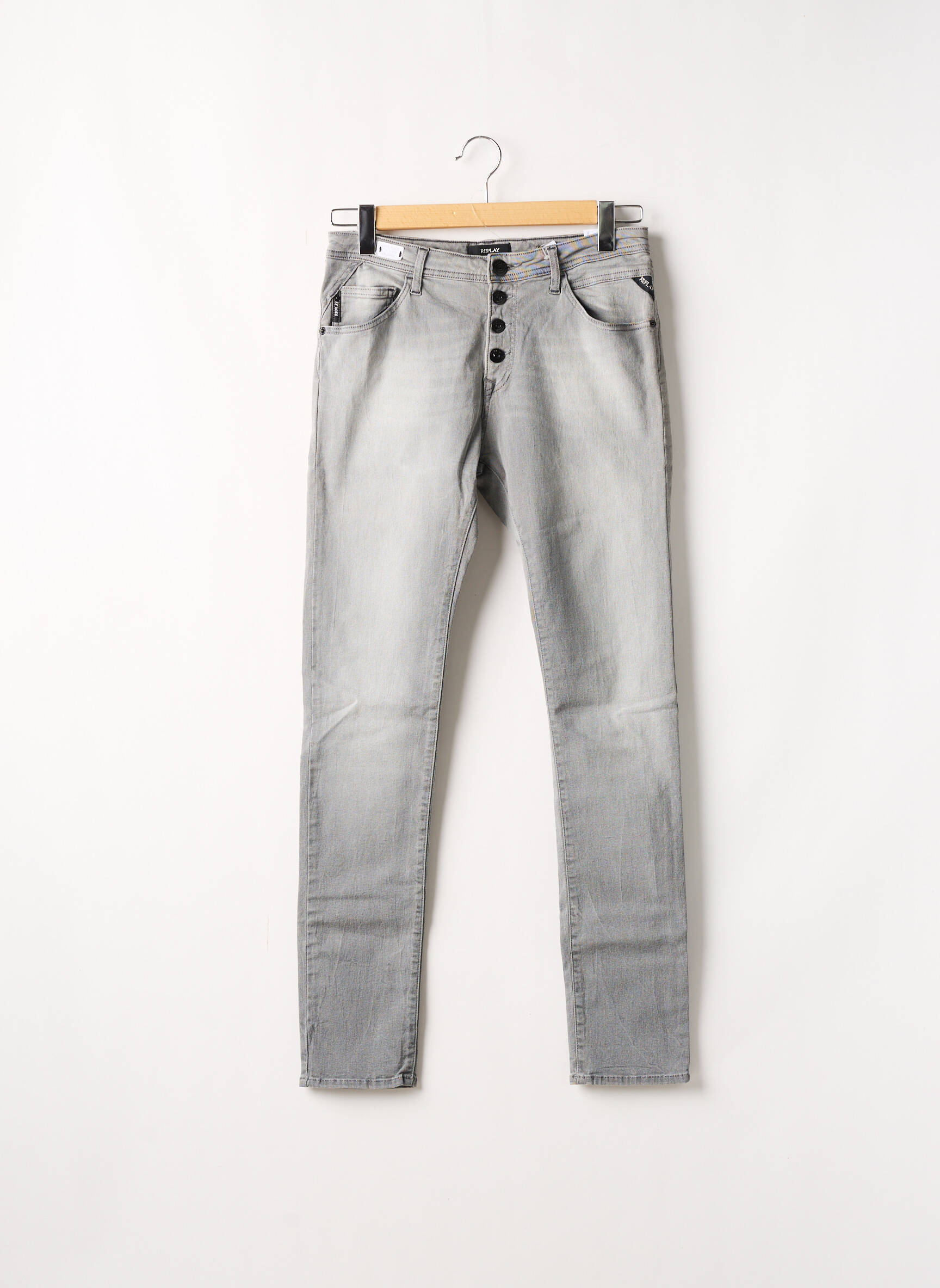 Blugi Cu Croială Slim Replay Gri Talie Înaltă