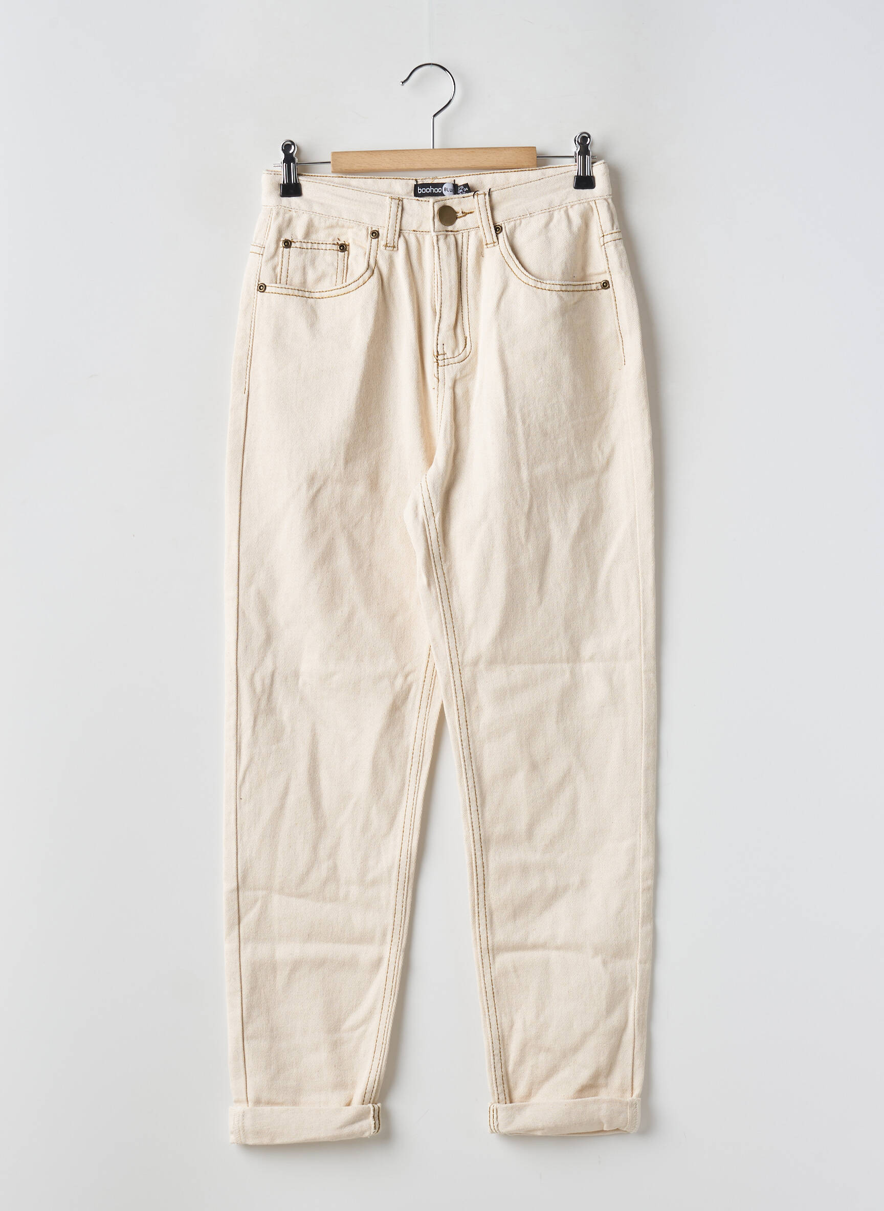 Blugi Croială Mom Boohoo Bej Talie Înaltă