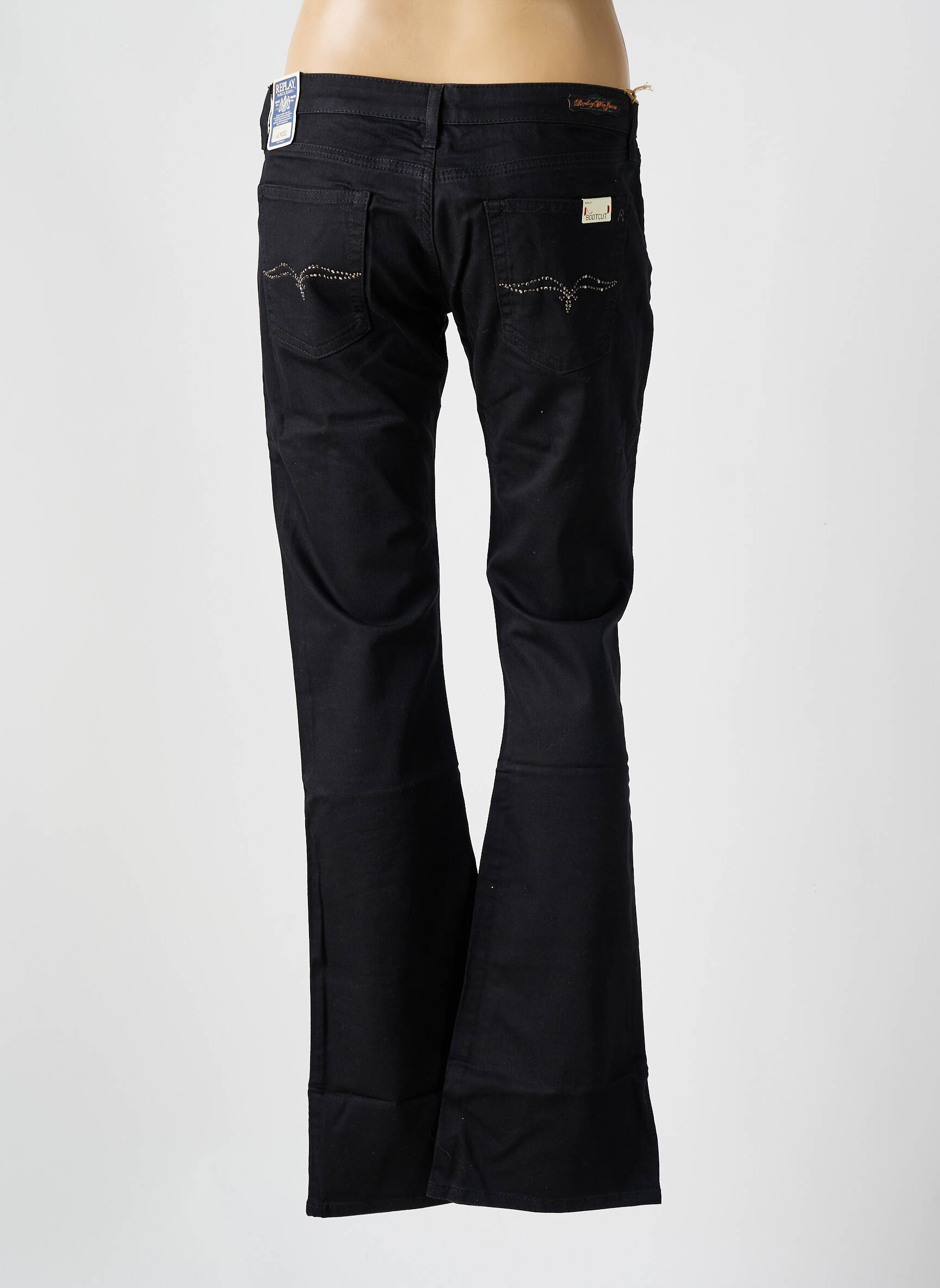 Blugi Bootcut Replay Negru Talie Joasă