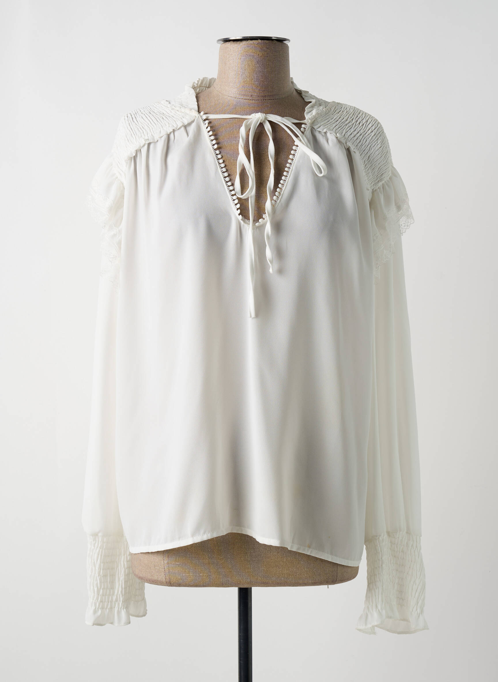 Bluză Bisou's Project Alb Mâneci Lungi