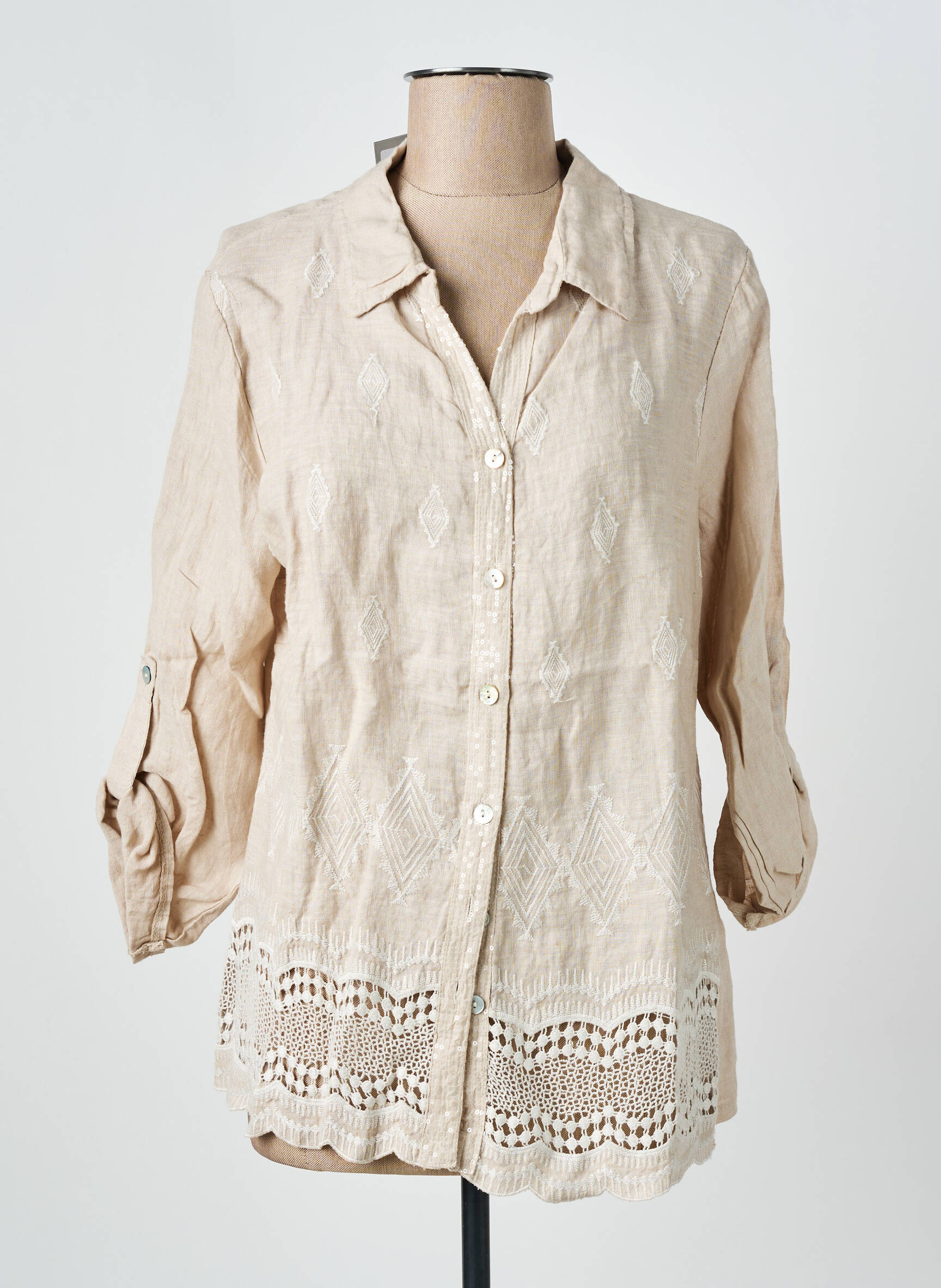 Cămașă Couleurs Du Temps Bej Mâneci Lungi