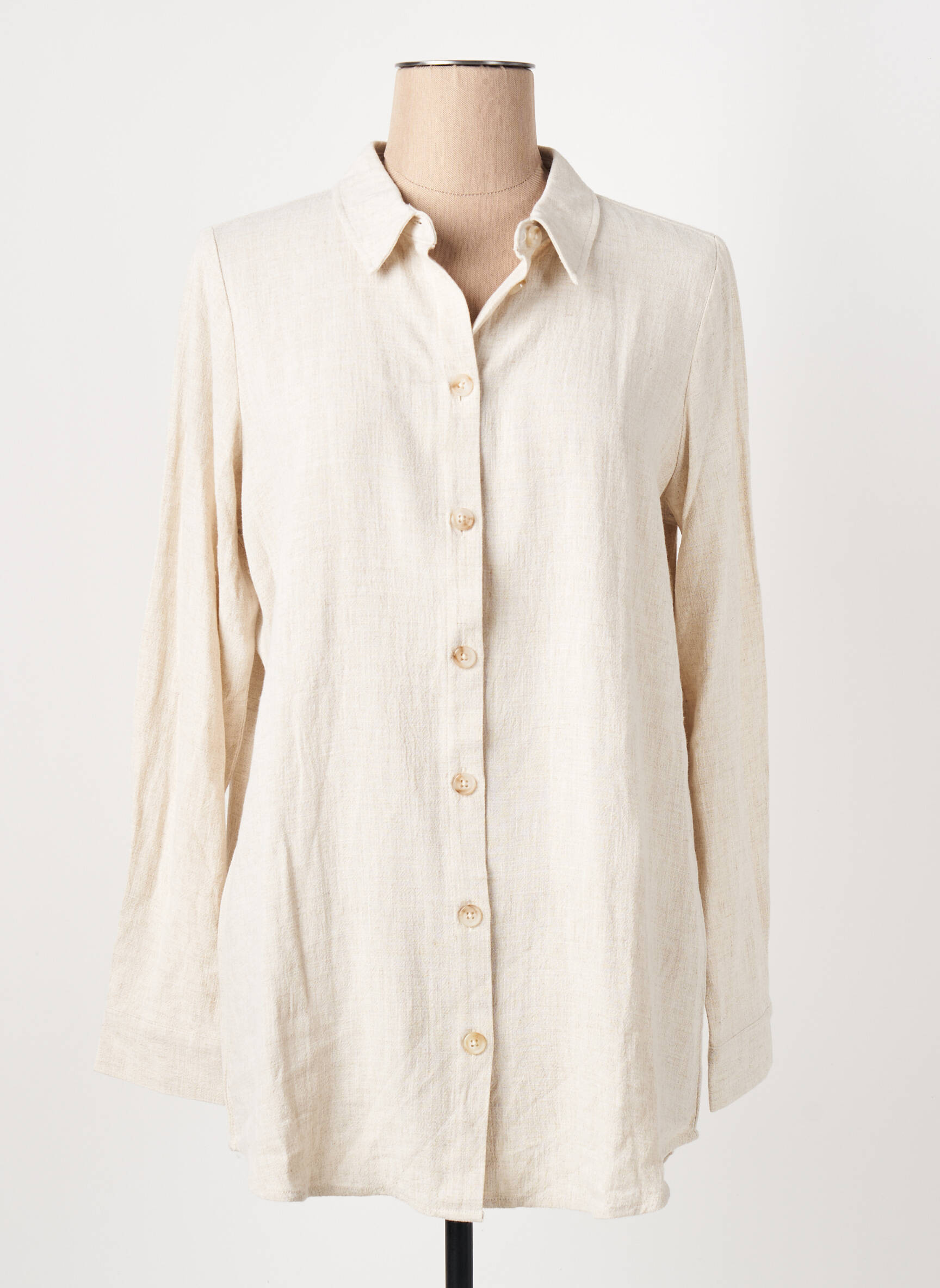Cămașă Object Bej Mâneci Lungi