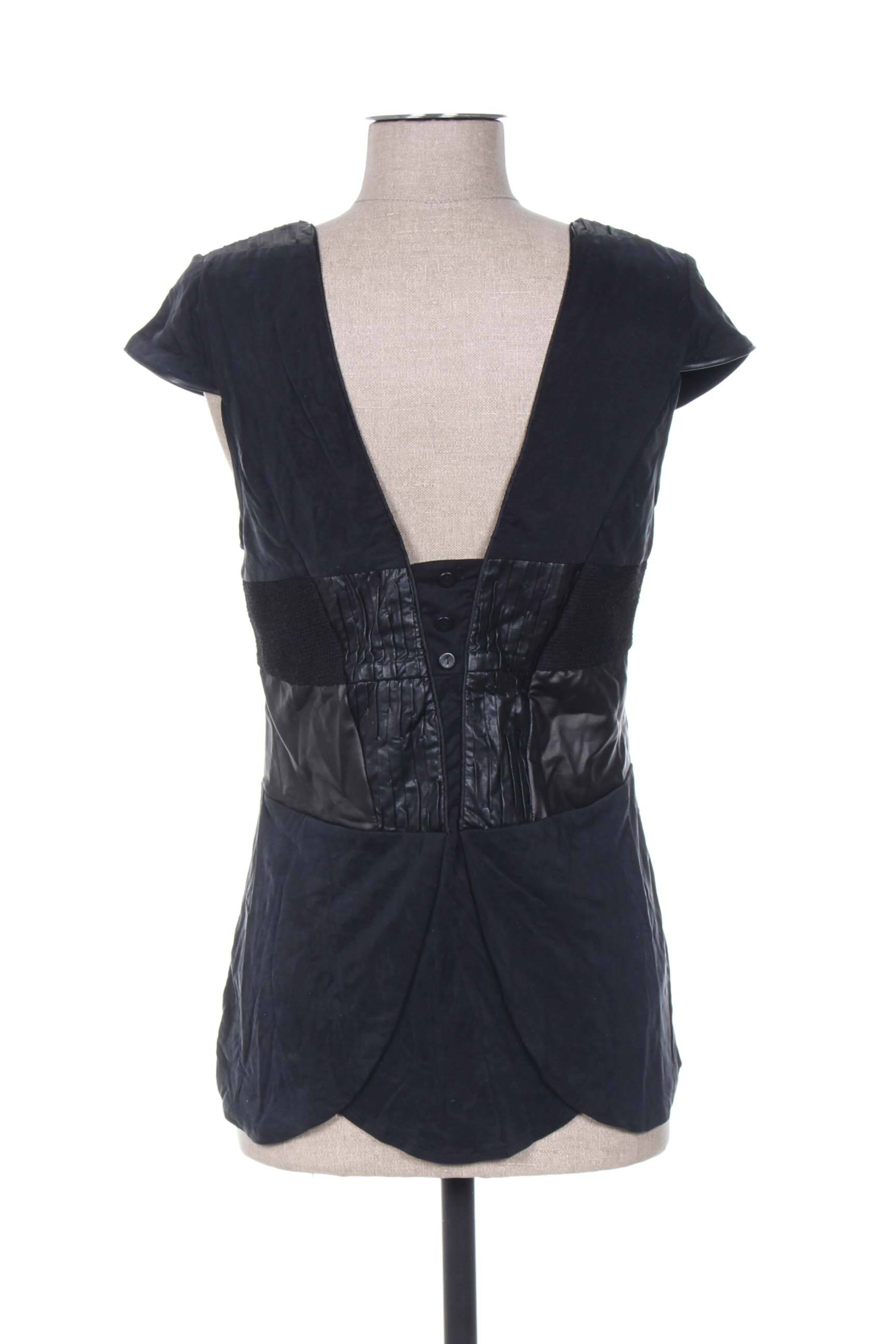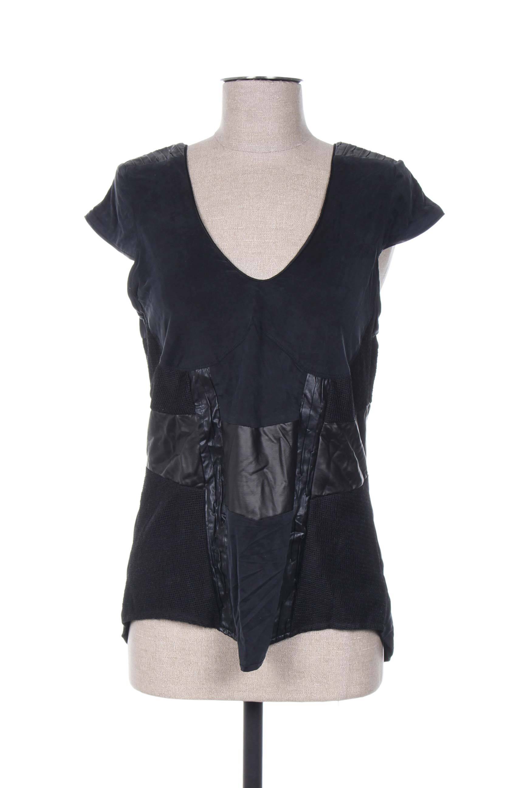 Top Anne Turtaut Negru Mâneci Scurte