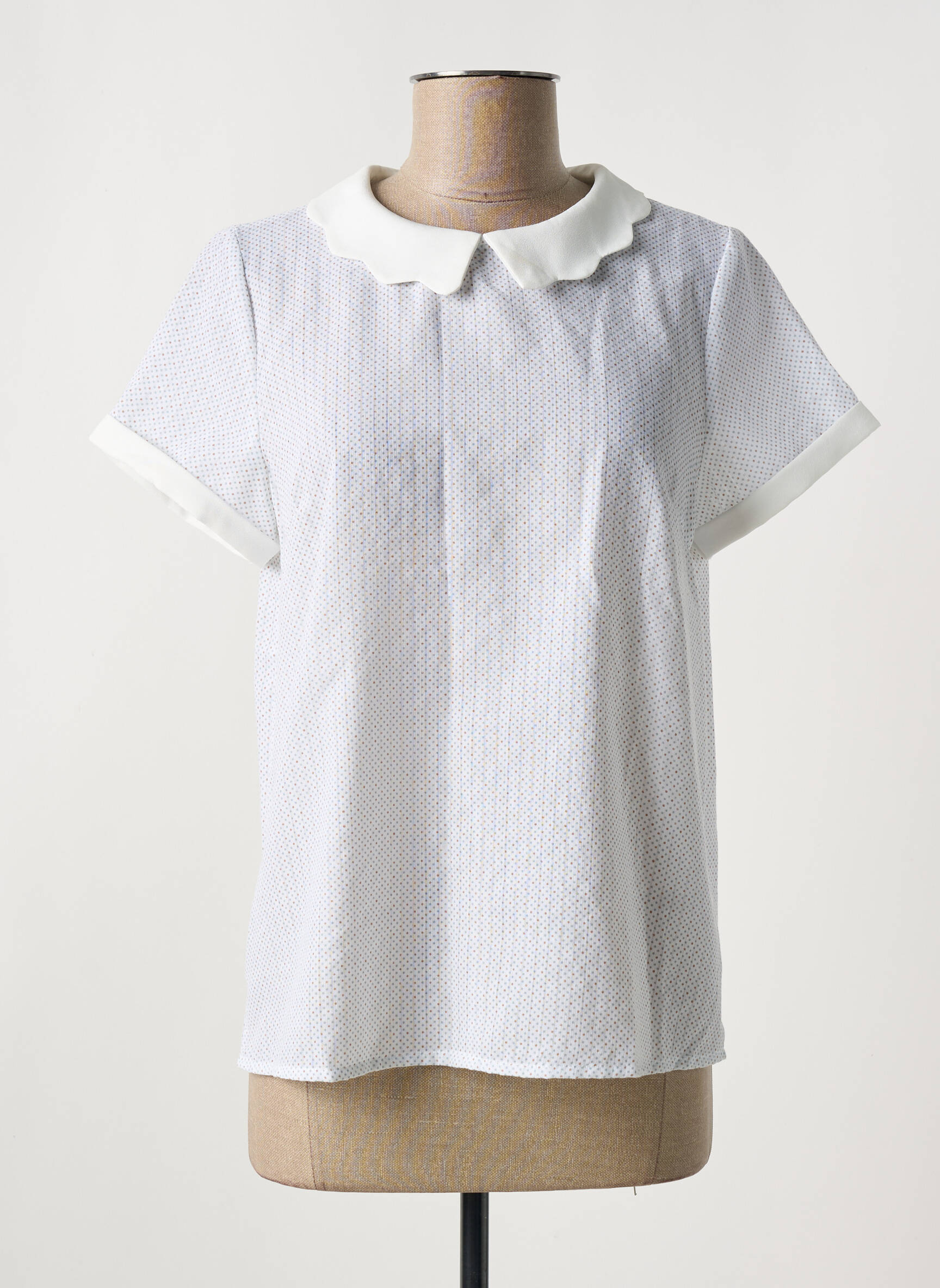 Top Cerise Blue Alb Mâneci Scurte