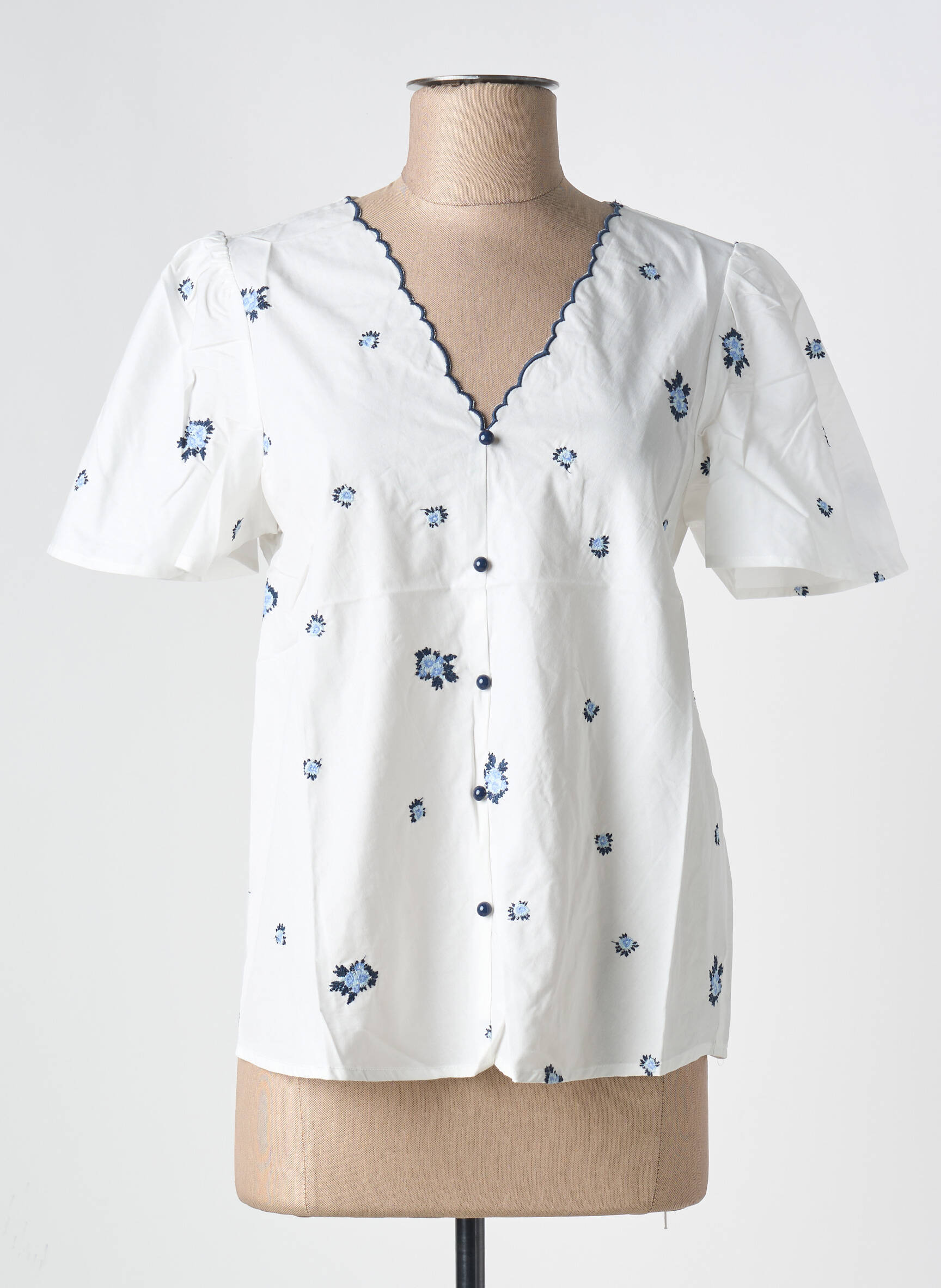 Top Cerise Blue Alb Mâneci Scurte