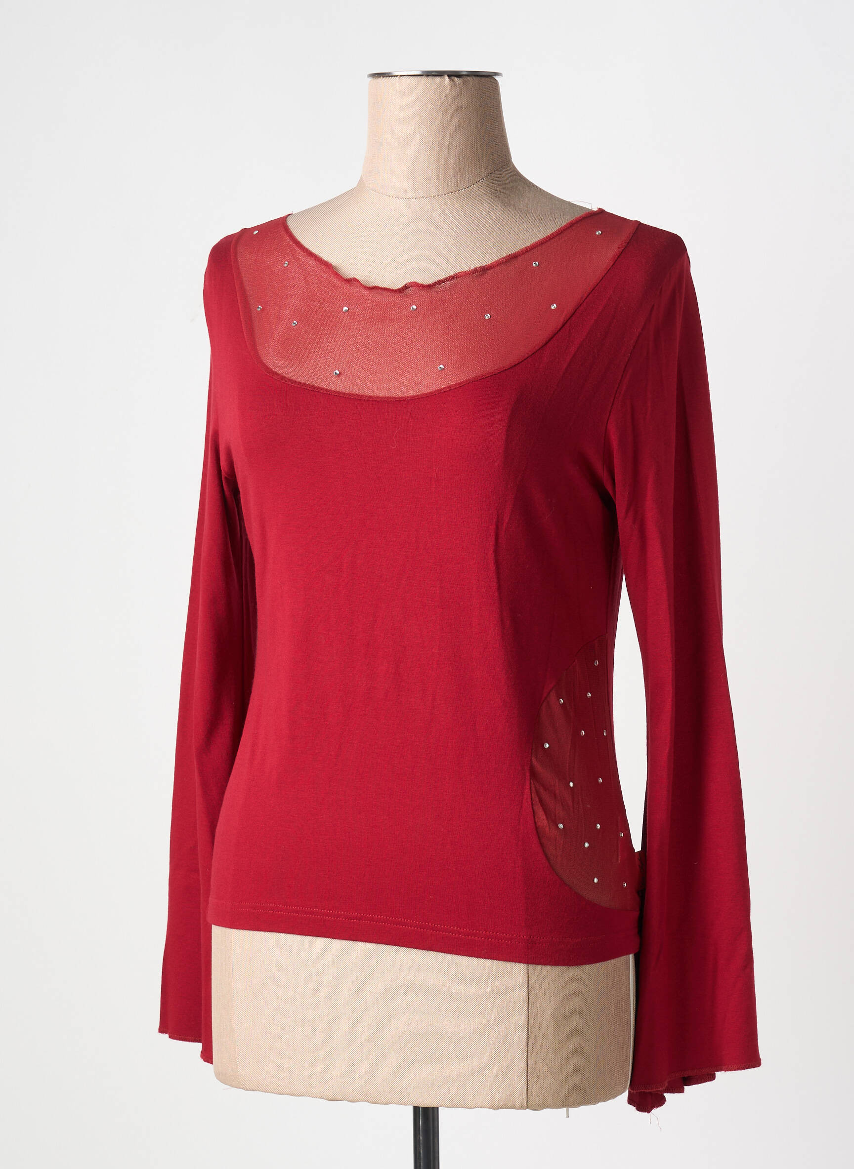 Top Cote Anglaise Roșu Mâneci Lungi