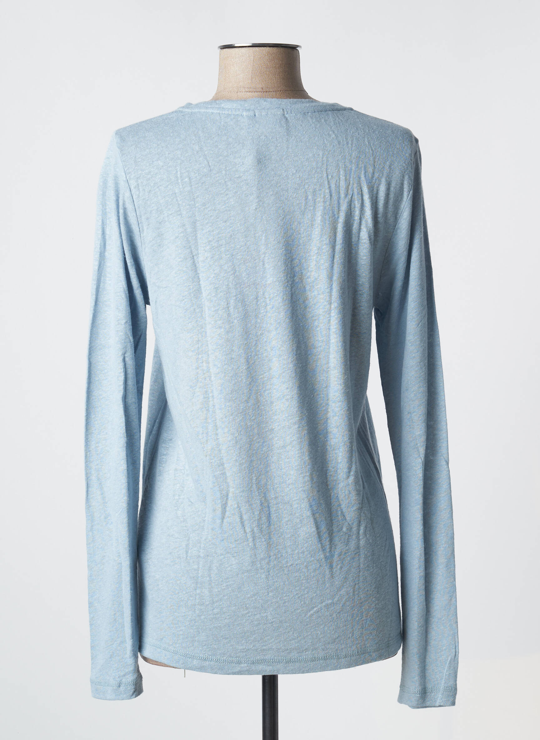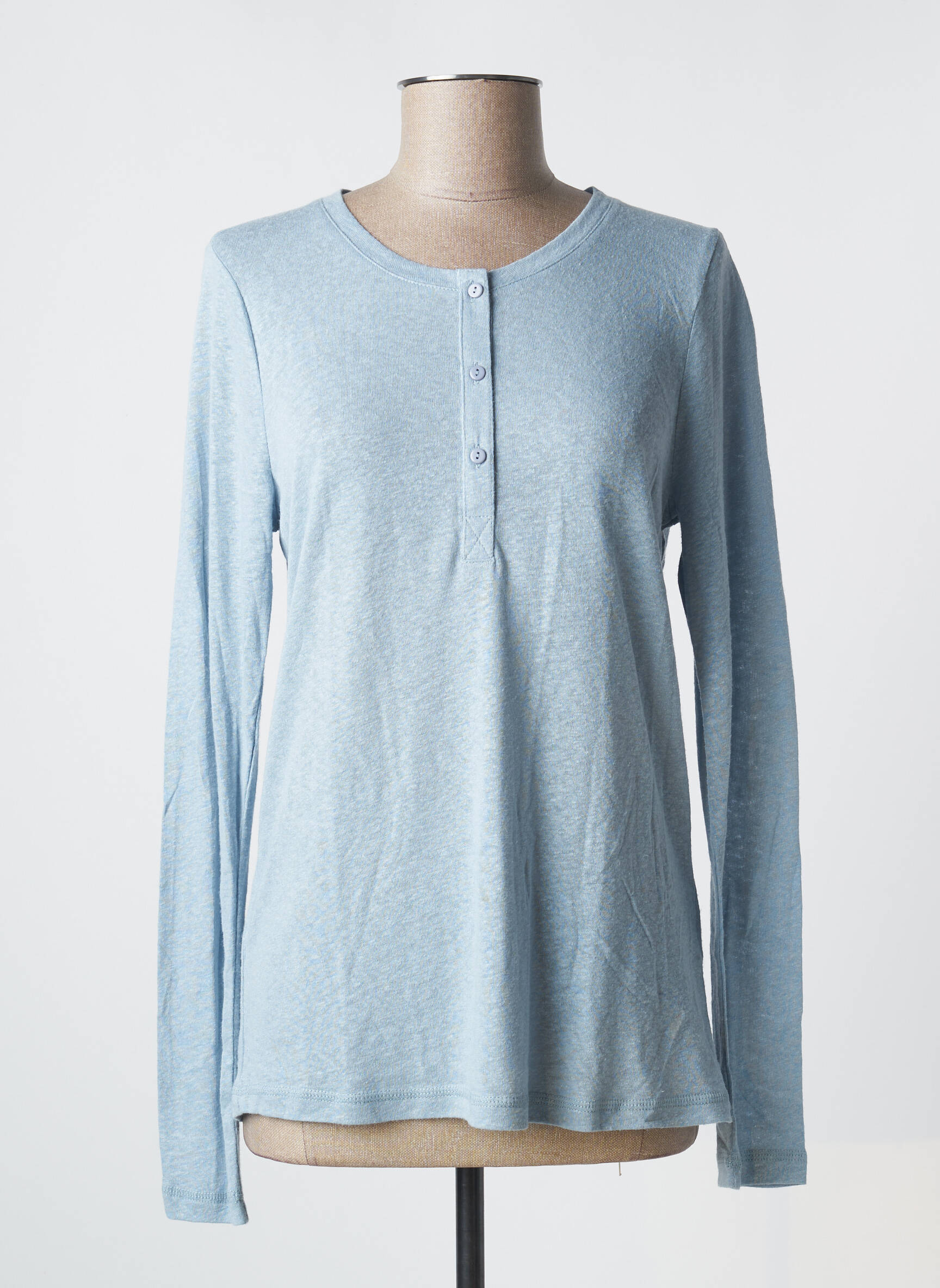 Top Cream Albastru Mâneci Lungi