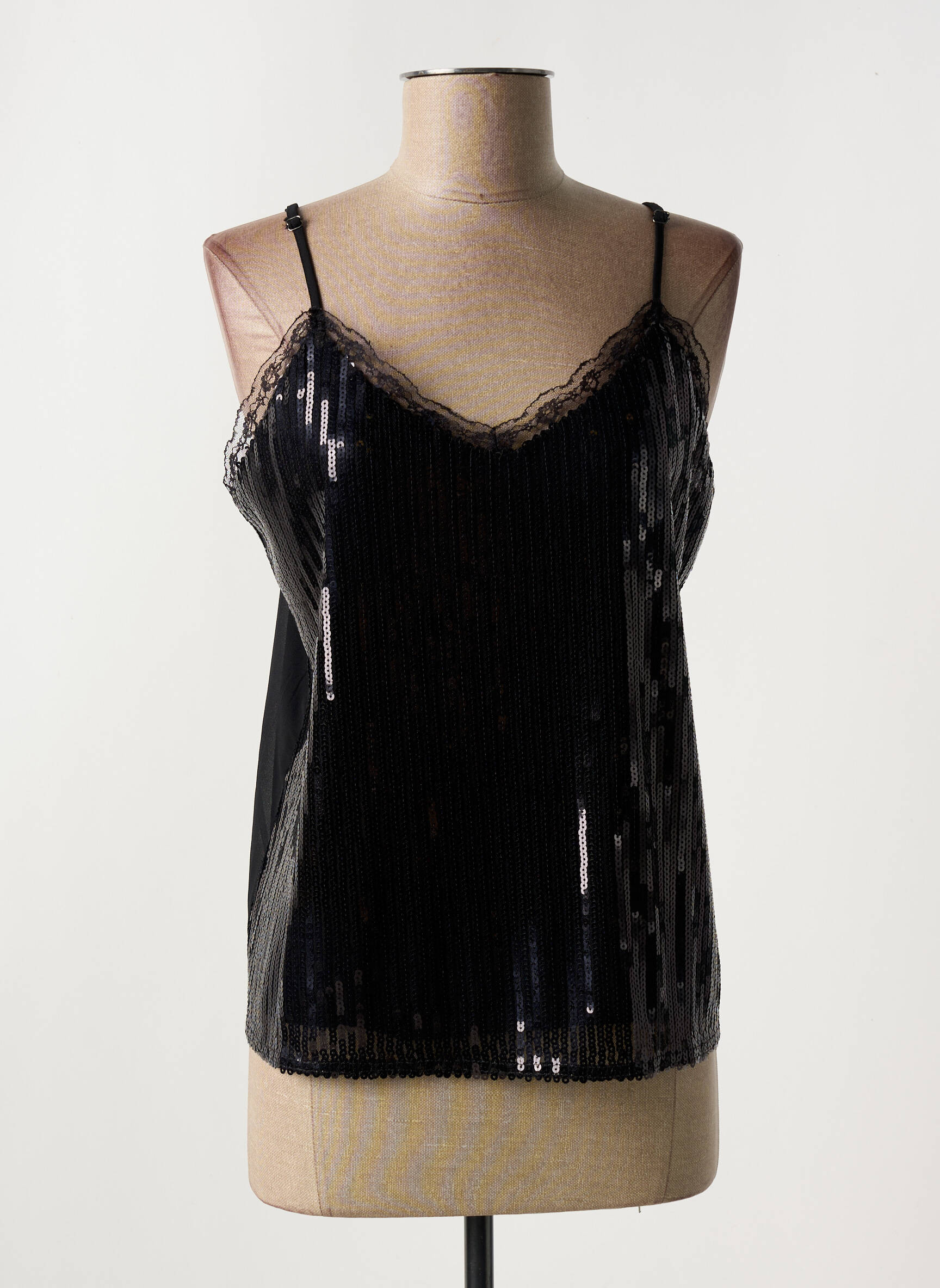 Top Cream Negru Bretele Subțiri