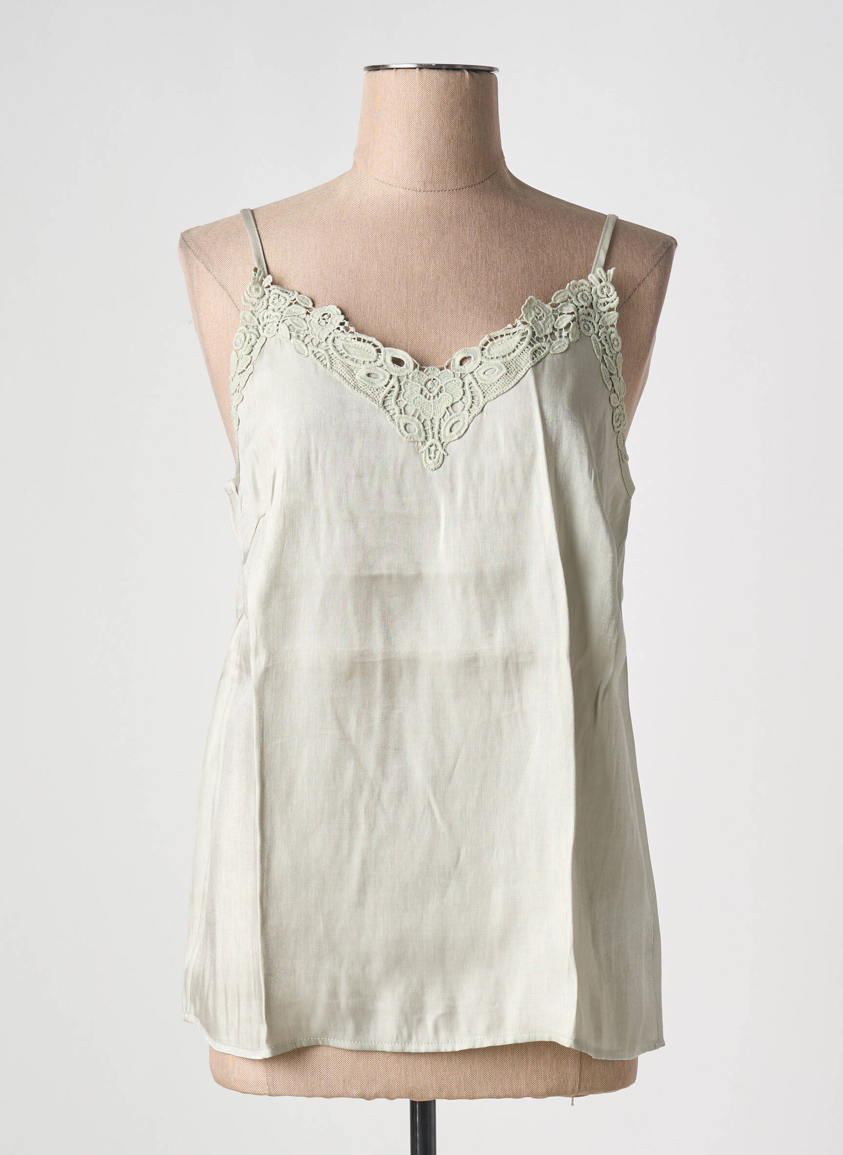 Top Cream Verde Bretele Subțiri