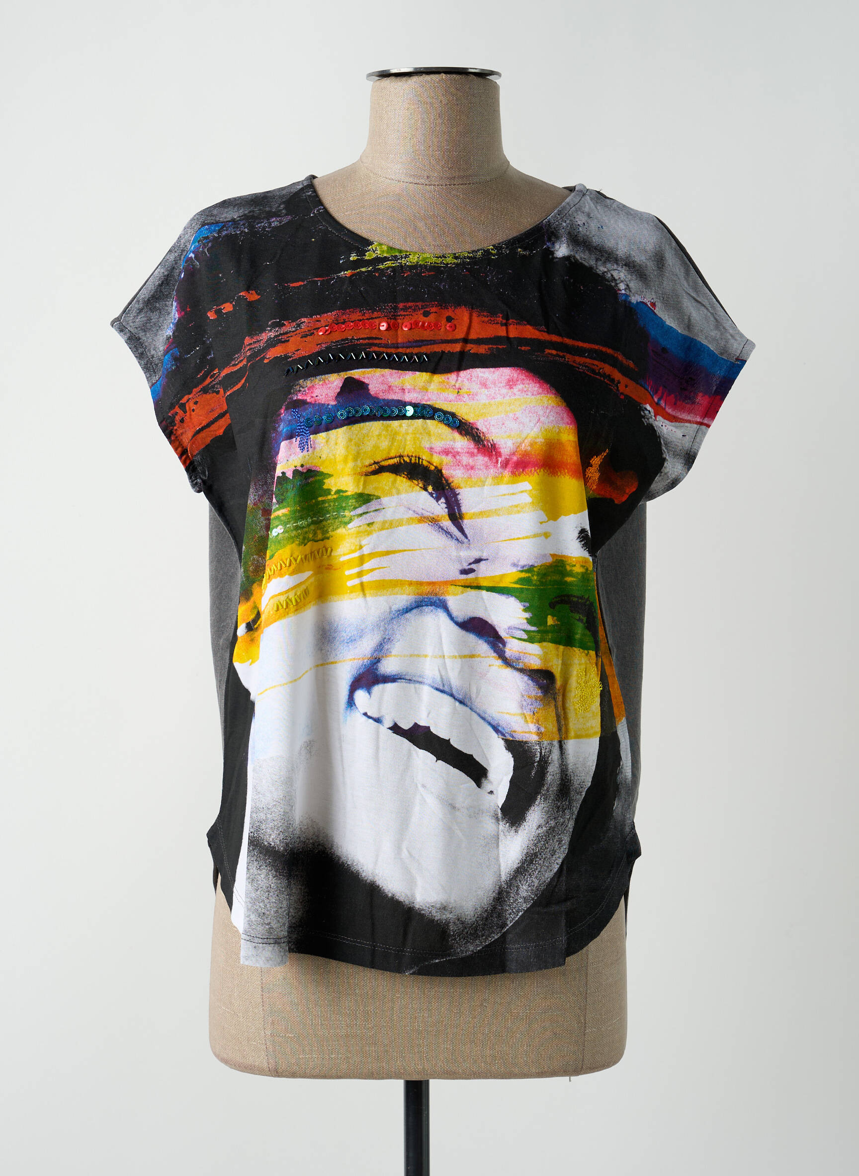 Top Desigual Gri Mâneci Scurte