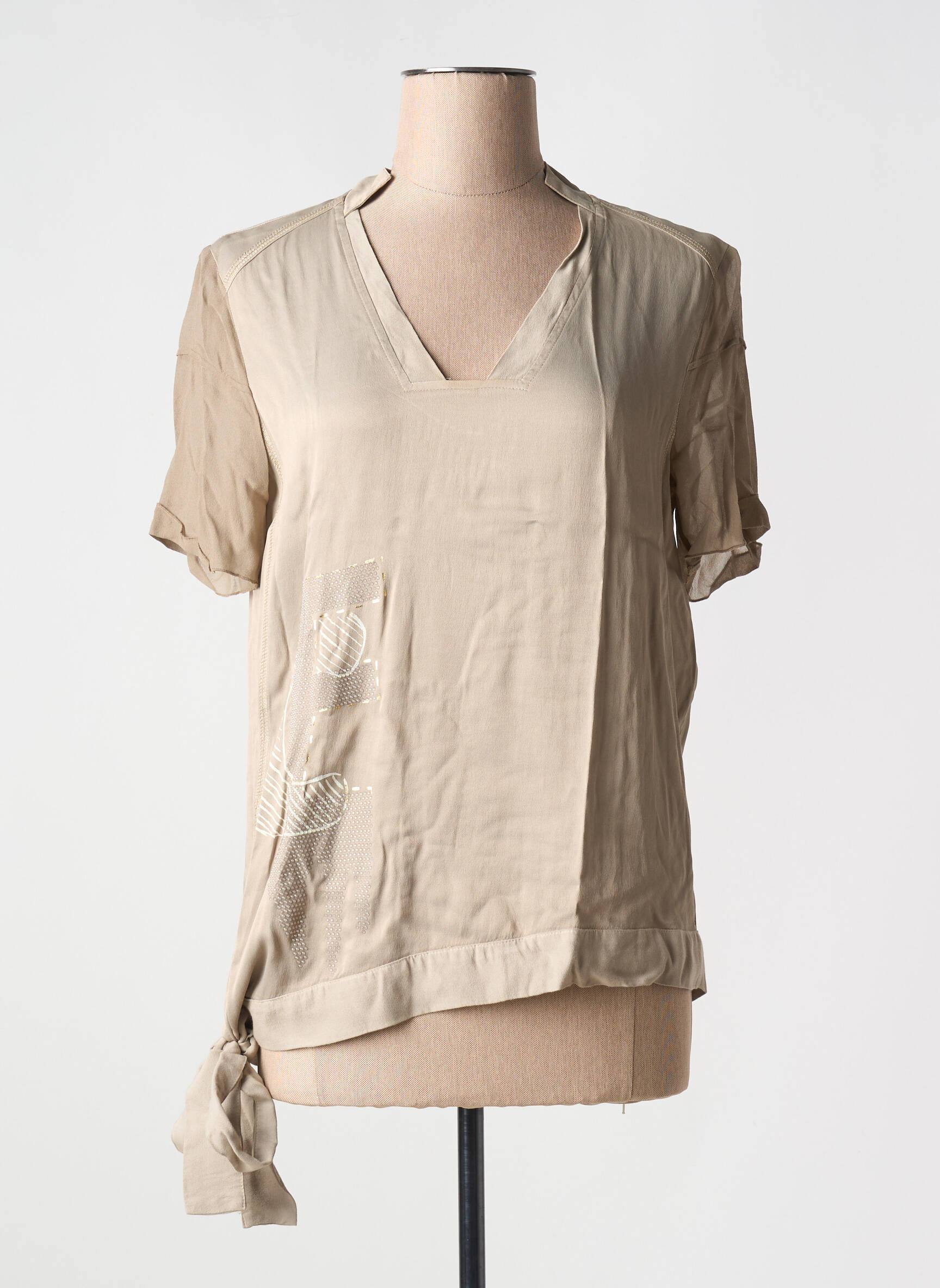 Top Elisa Cavaletti Bej Mâneci Scurte