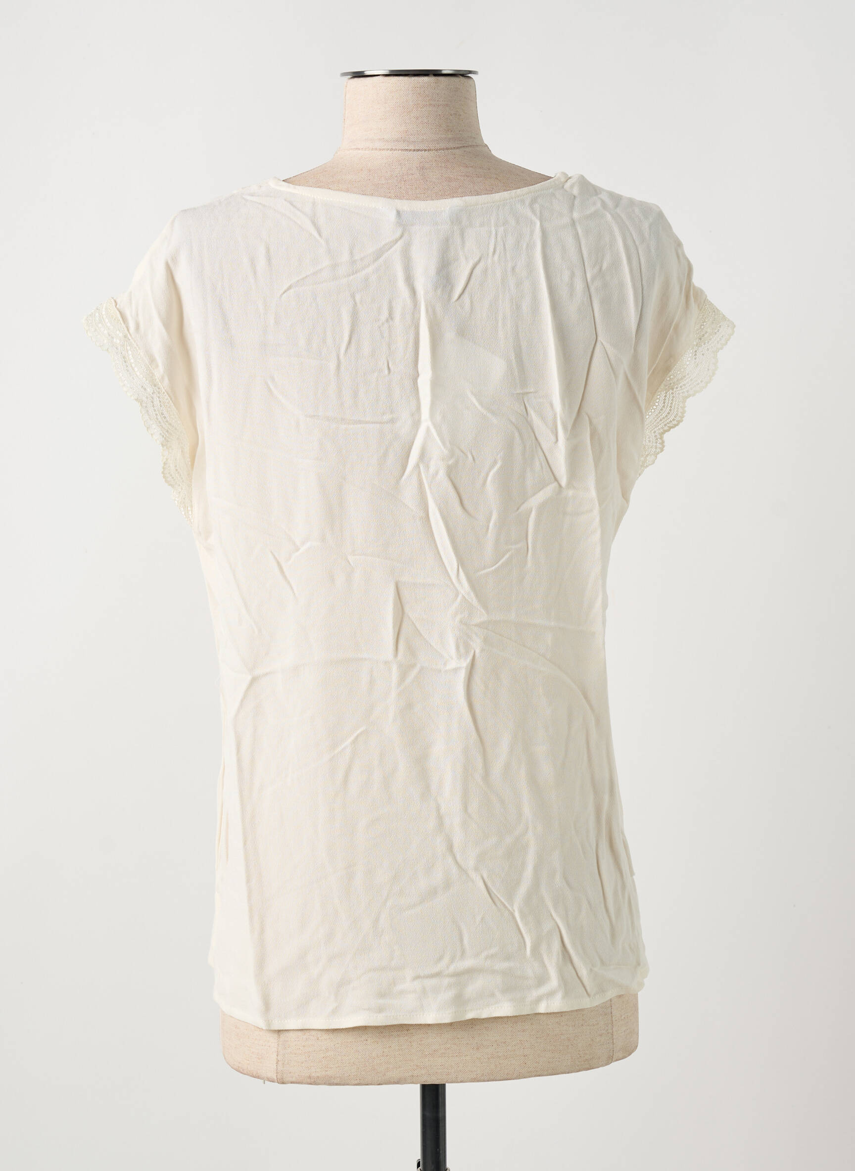 Top Julie Guerlande Bej Mâneci Scurte