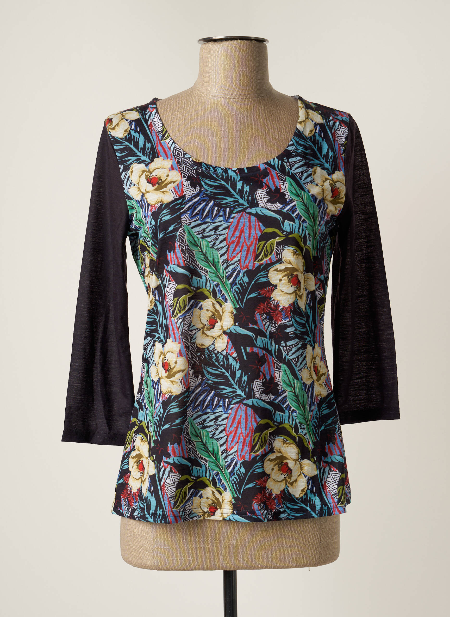 Top La Fiancee Du Mekong Negru Mâneci 3/4