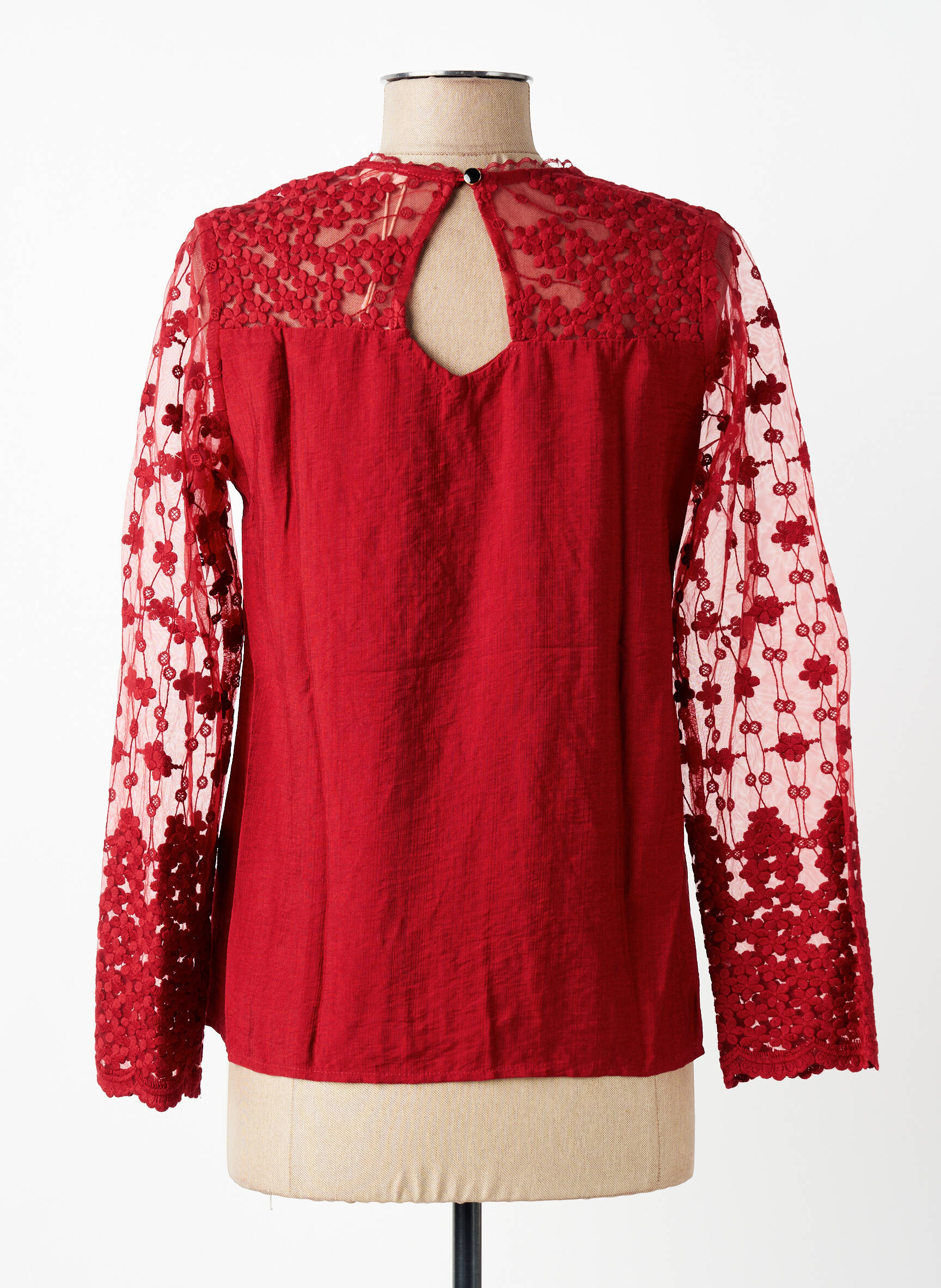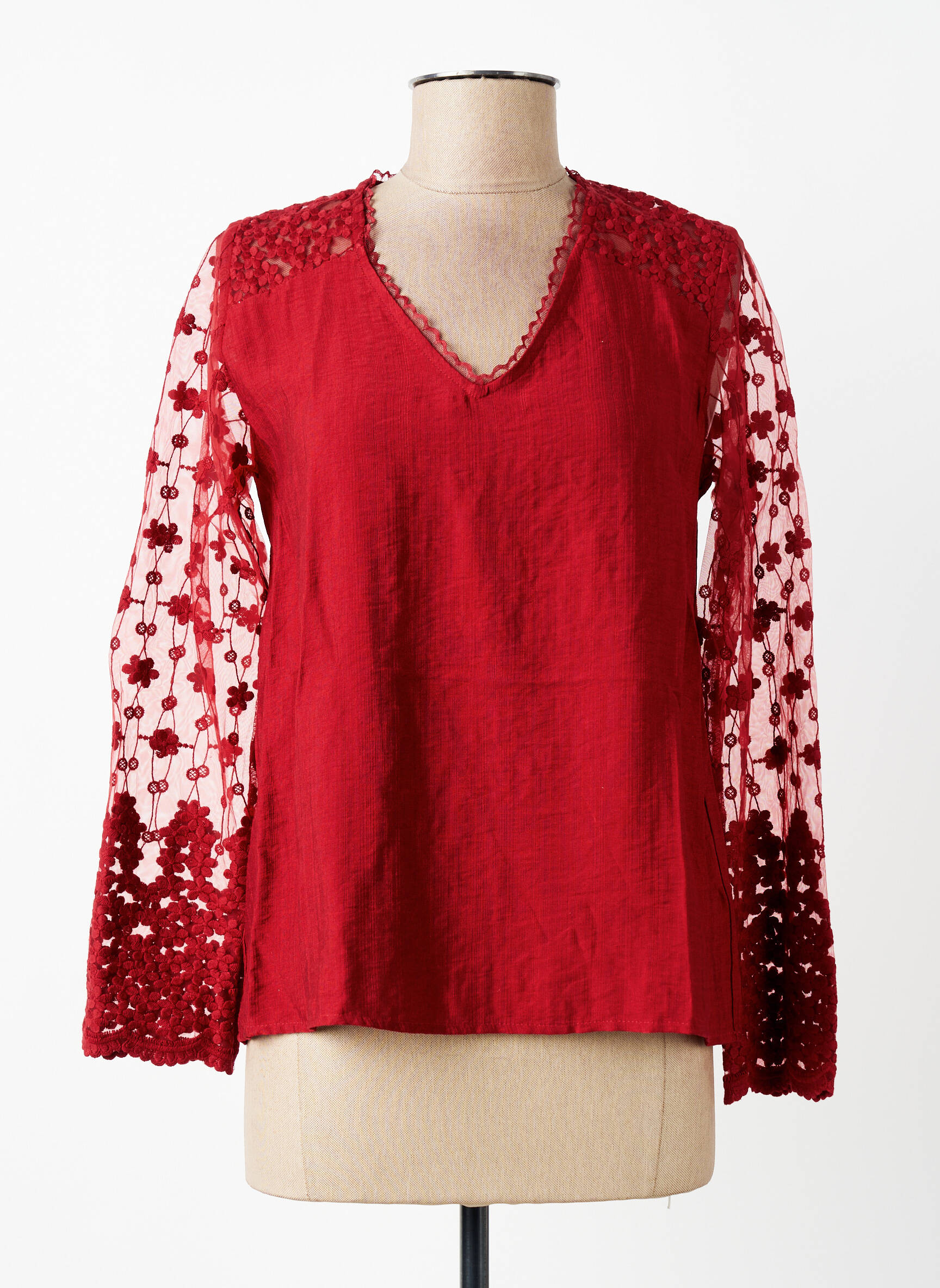 Top Maelle Roșu Mâneci Lungi
