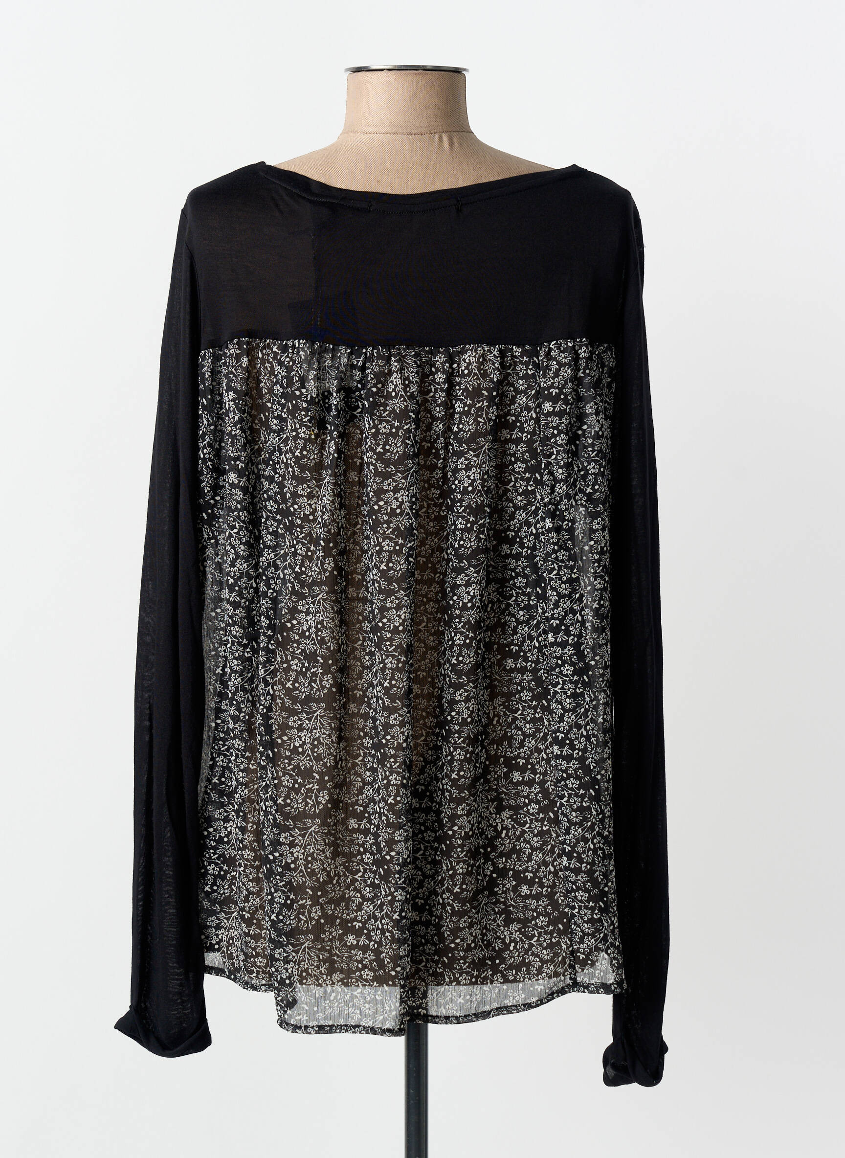 Top Maison Scotch Negru Mâneci Lungi