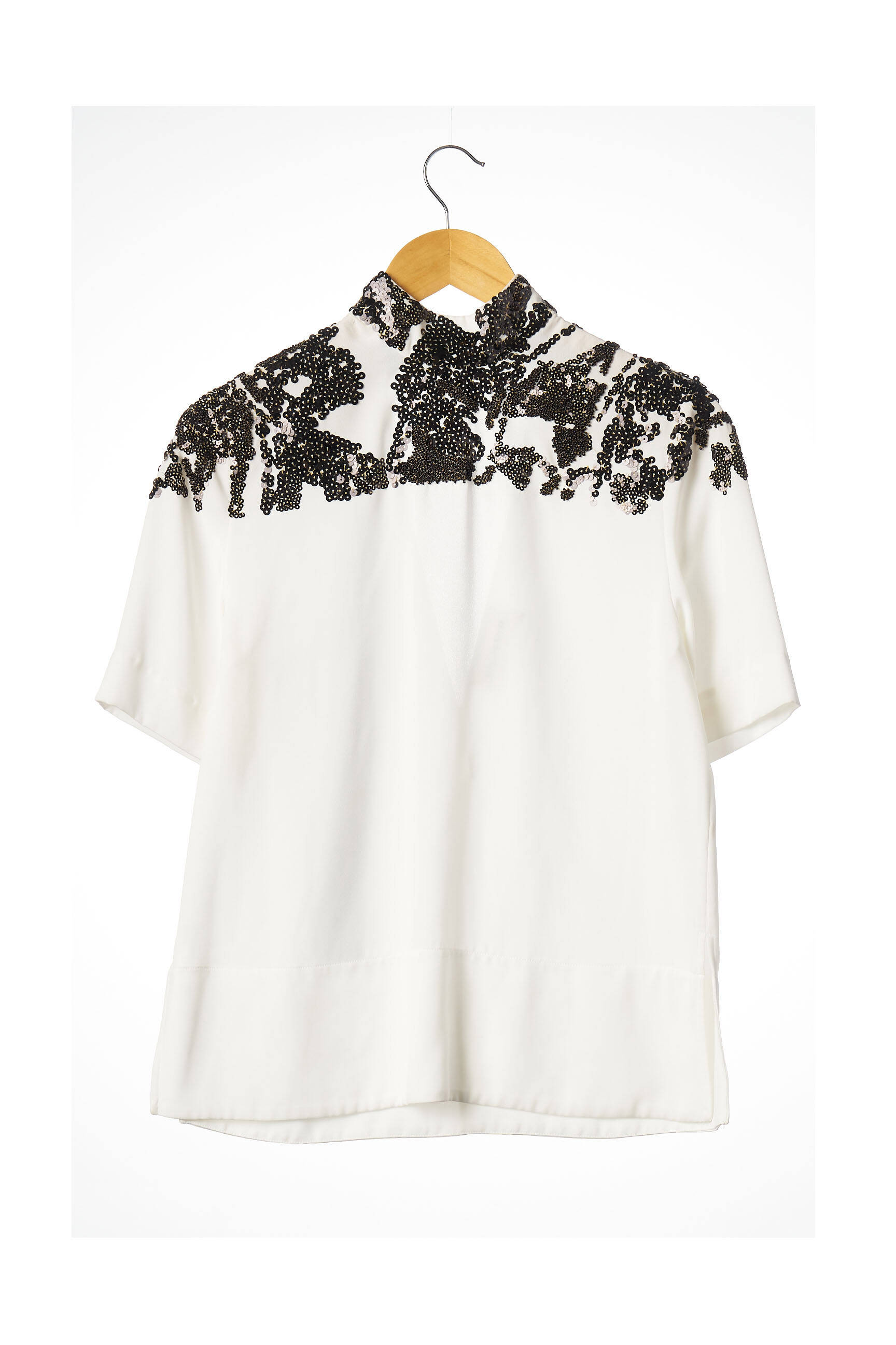 Top Malene Birger Alb Mâneci Scurte
