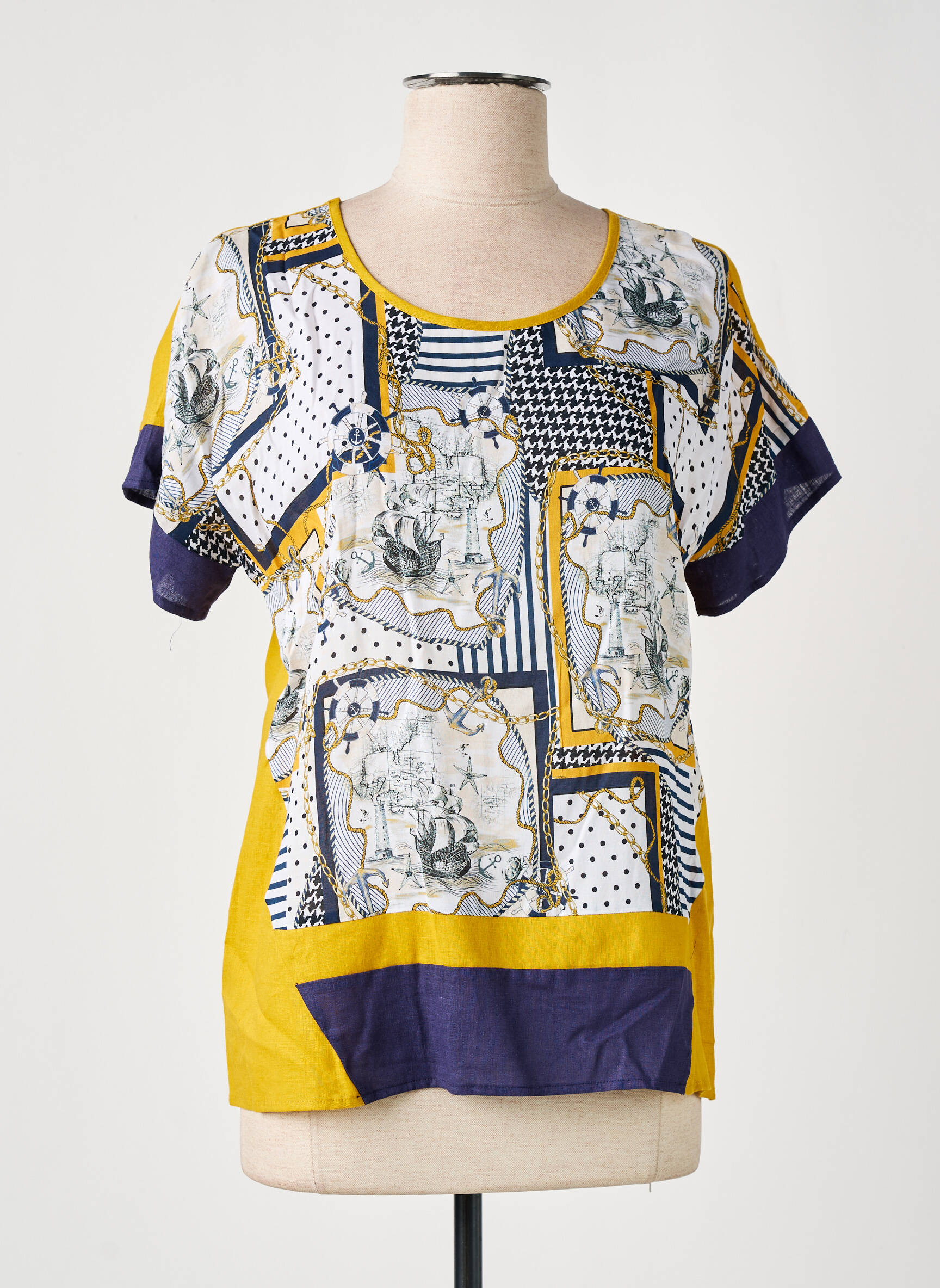 Top Marina Riveiro Galben Mâneci Scurte