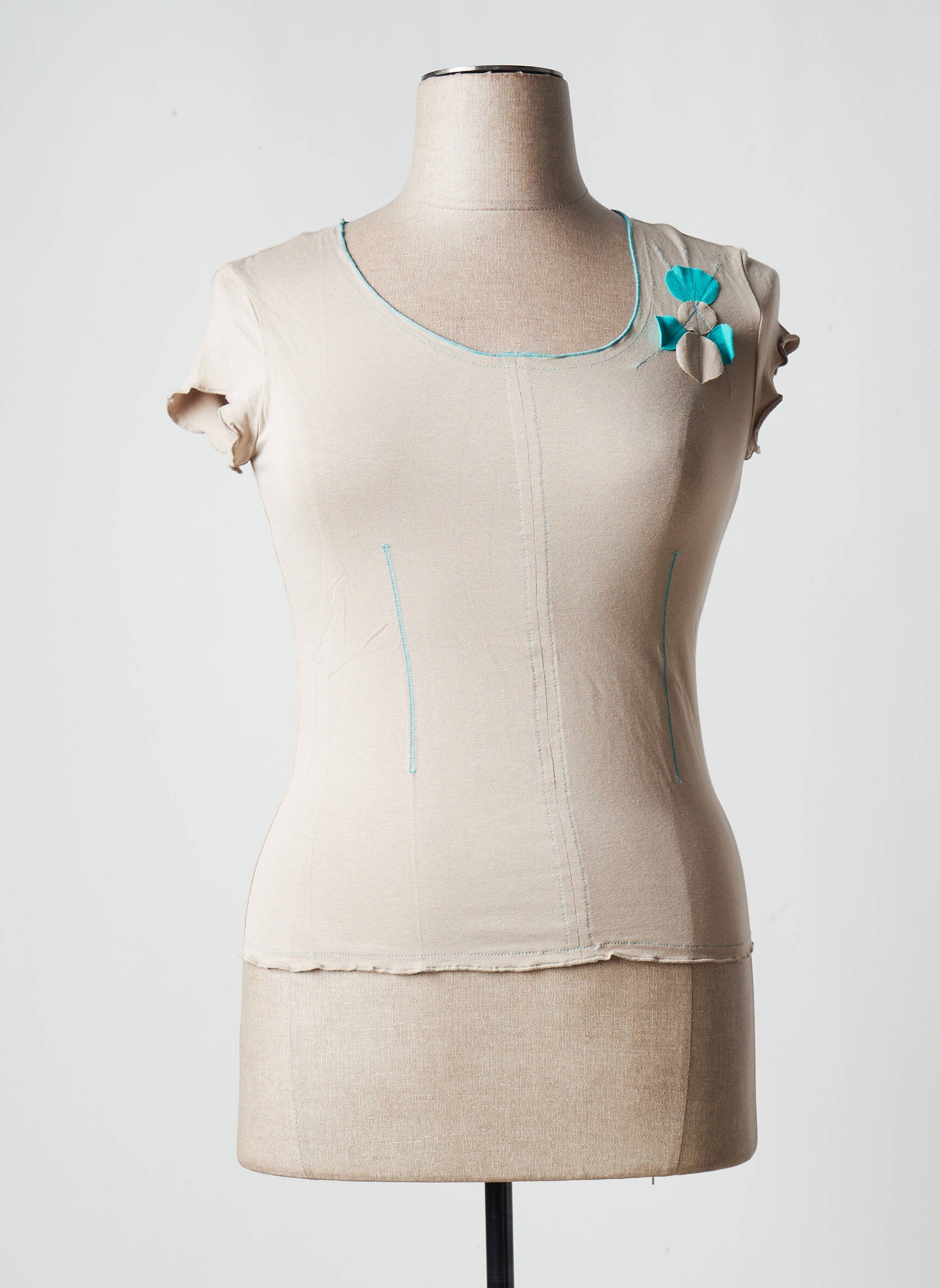 Top O.k.s Bej Mâneci Scurte