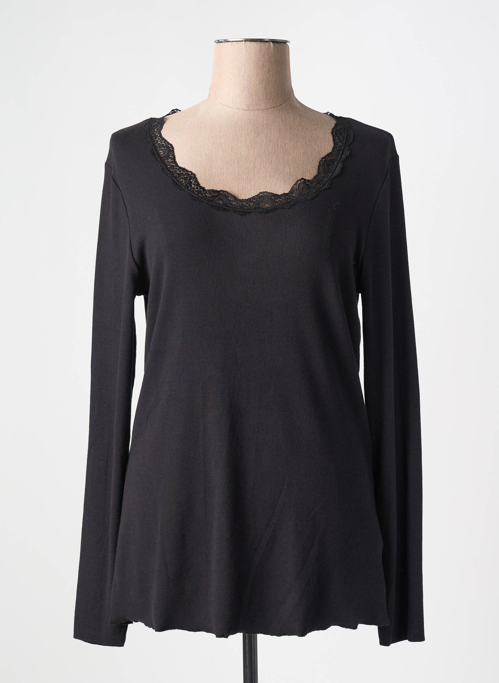 Top Oui Negru Mâneci Lungi