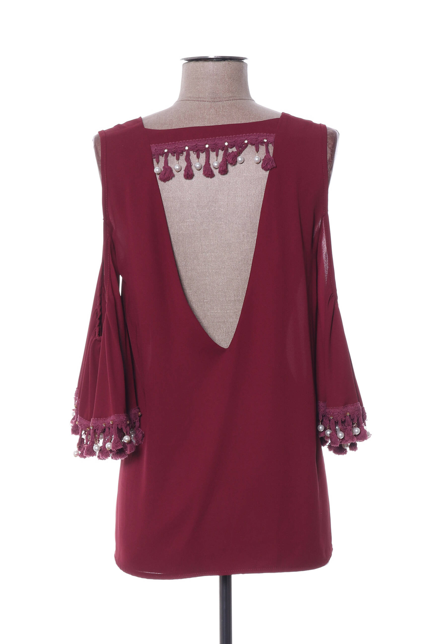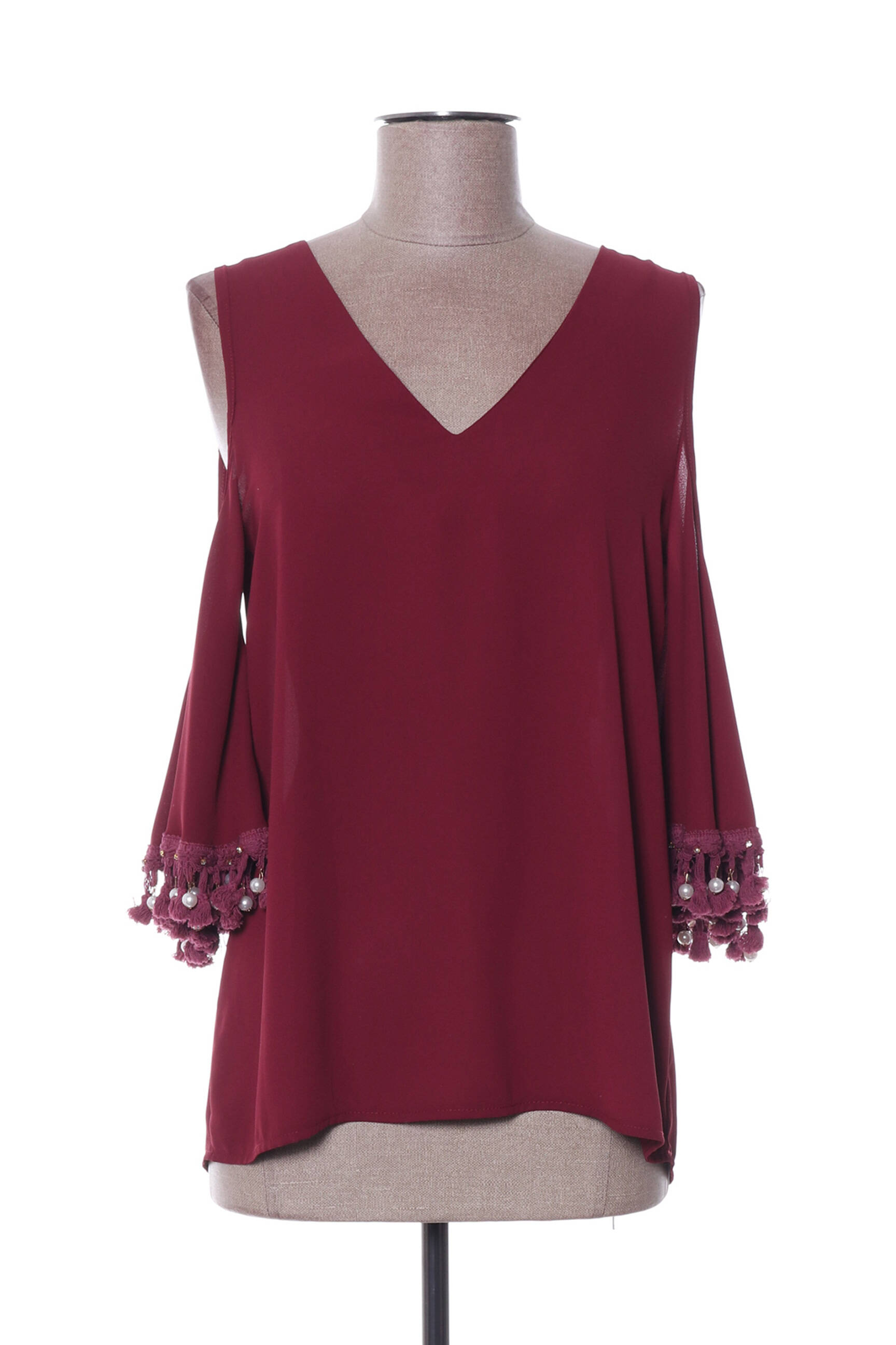 Top Poupée De Soie Roșu Mâneci 3/4