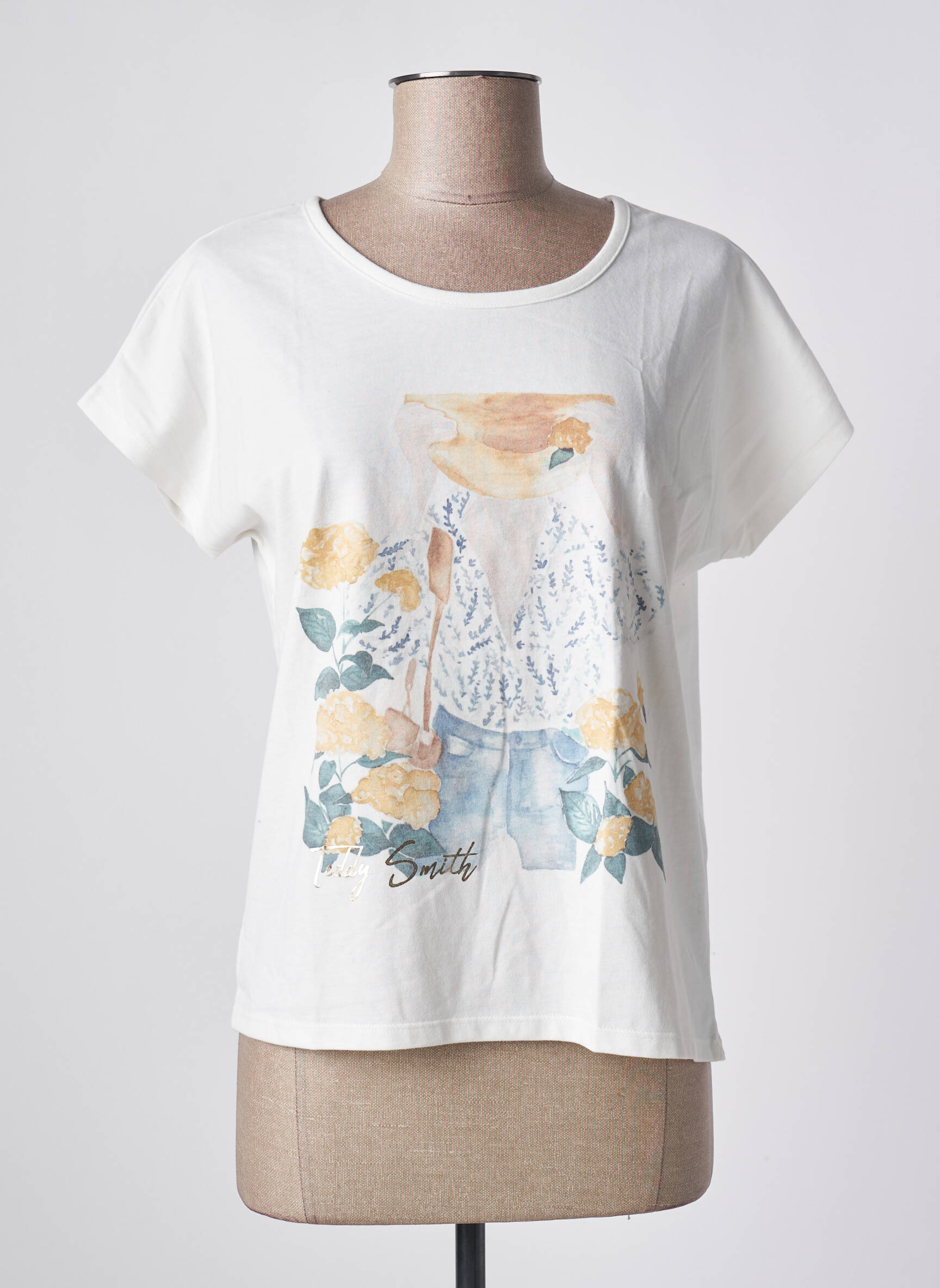 Top Teddy Smith Alb Mâneci Scurte