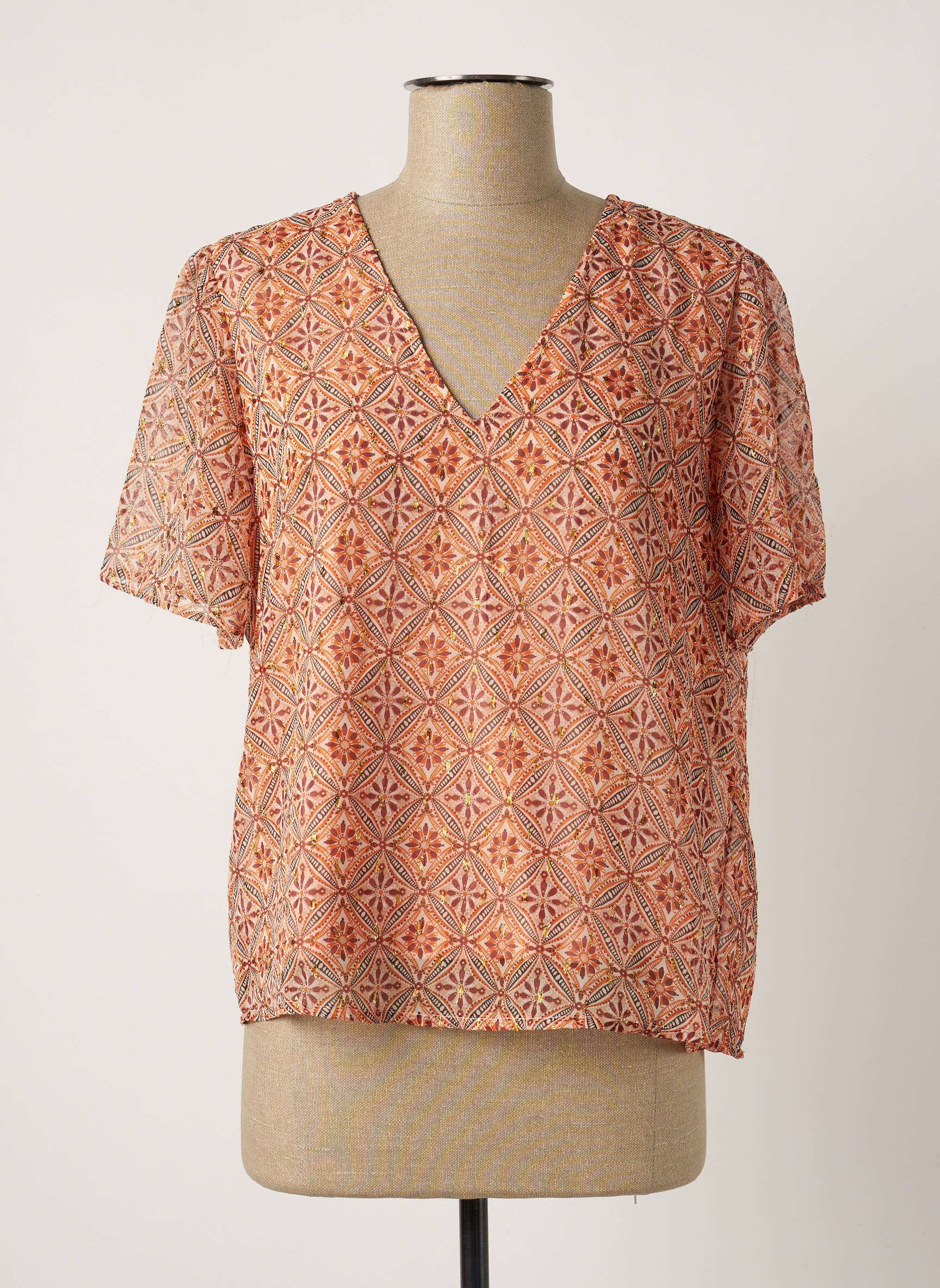 Top Vila Portocaliu Mâneci Scurte