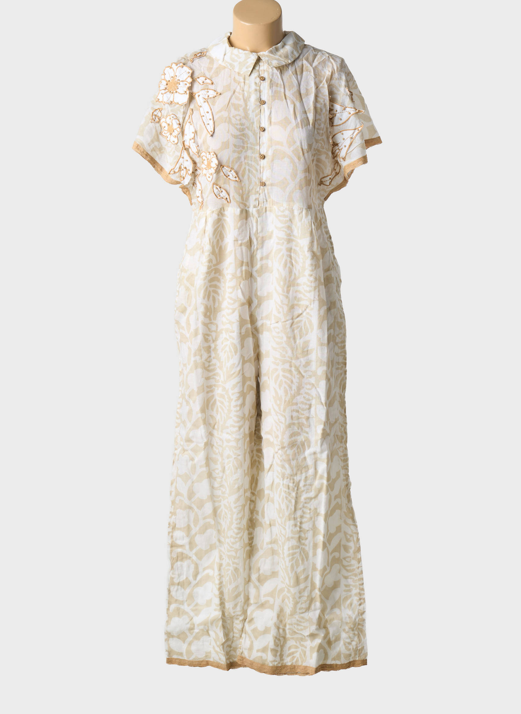 Salopetă-pantalon Chloe Laetitia Bej Mâneci Scurte