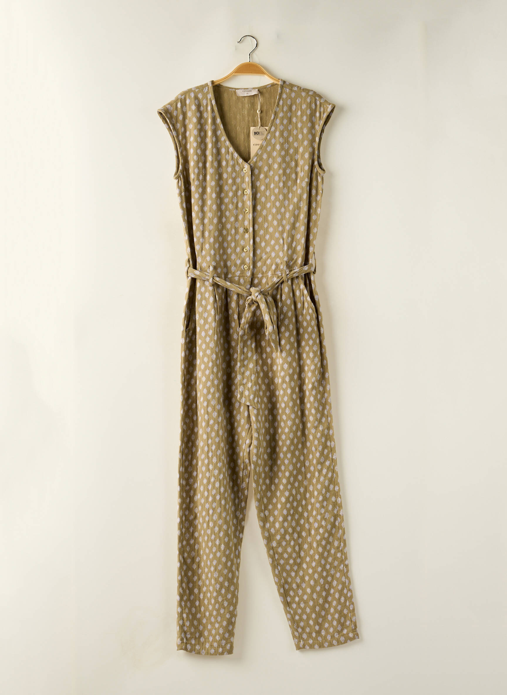 Salopetă-pantalon Cream Verde Fără Mâneci