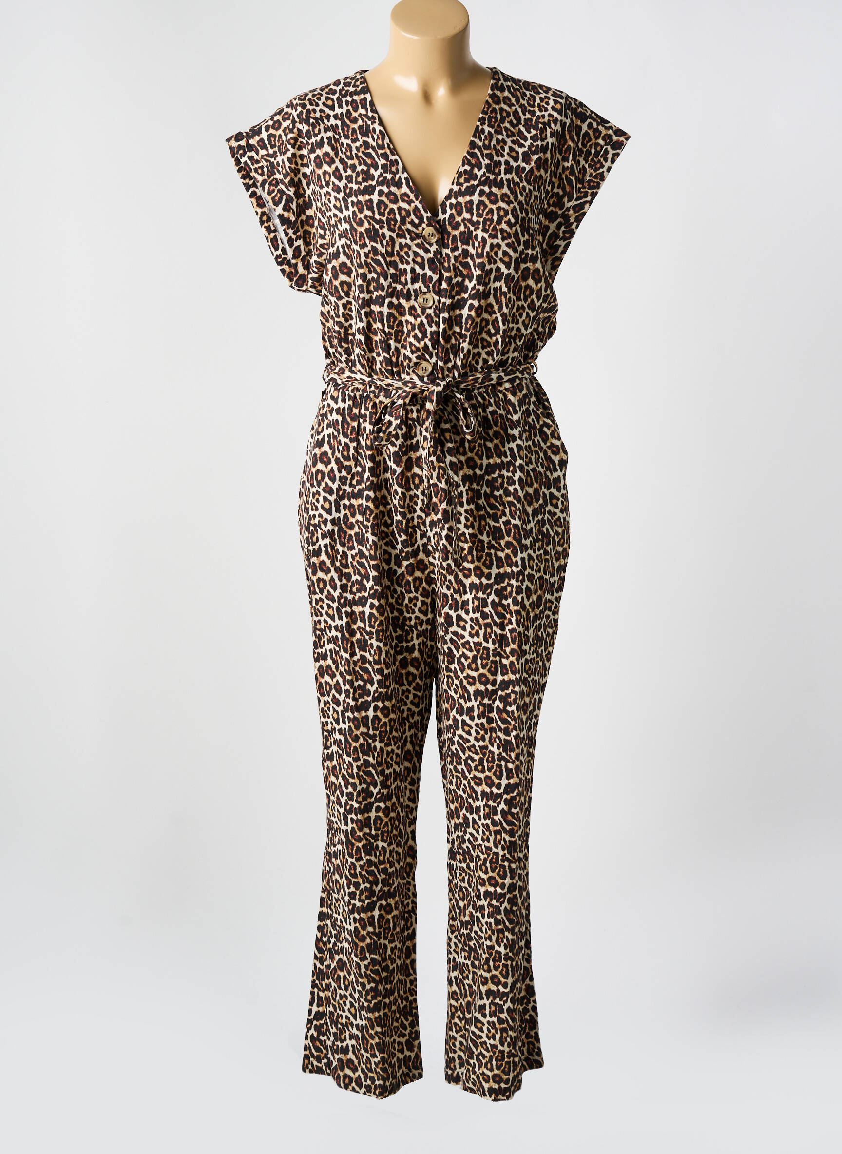 Salopetă-pantalon Pieces Bej Mâneci Scurte