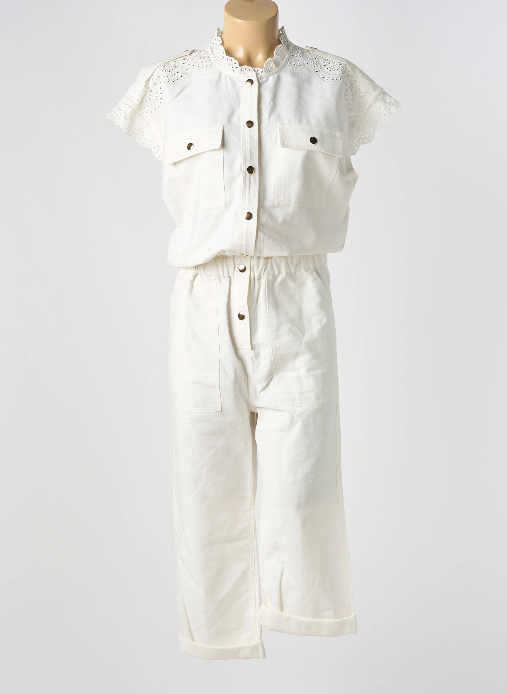 Salopetă-pantalon Tara Jarmon Alb Mâneci Scurte