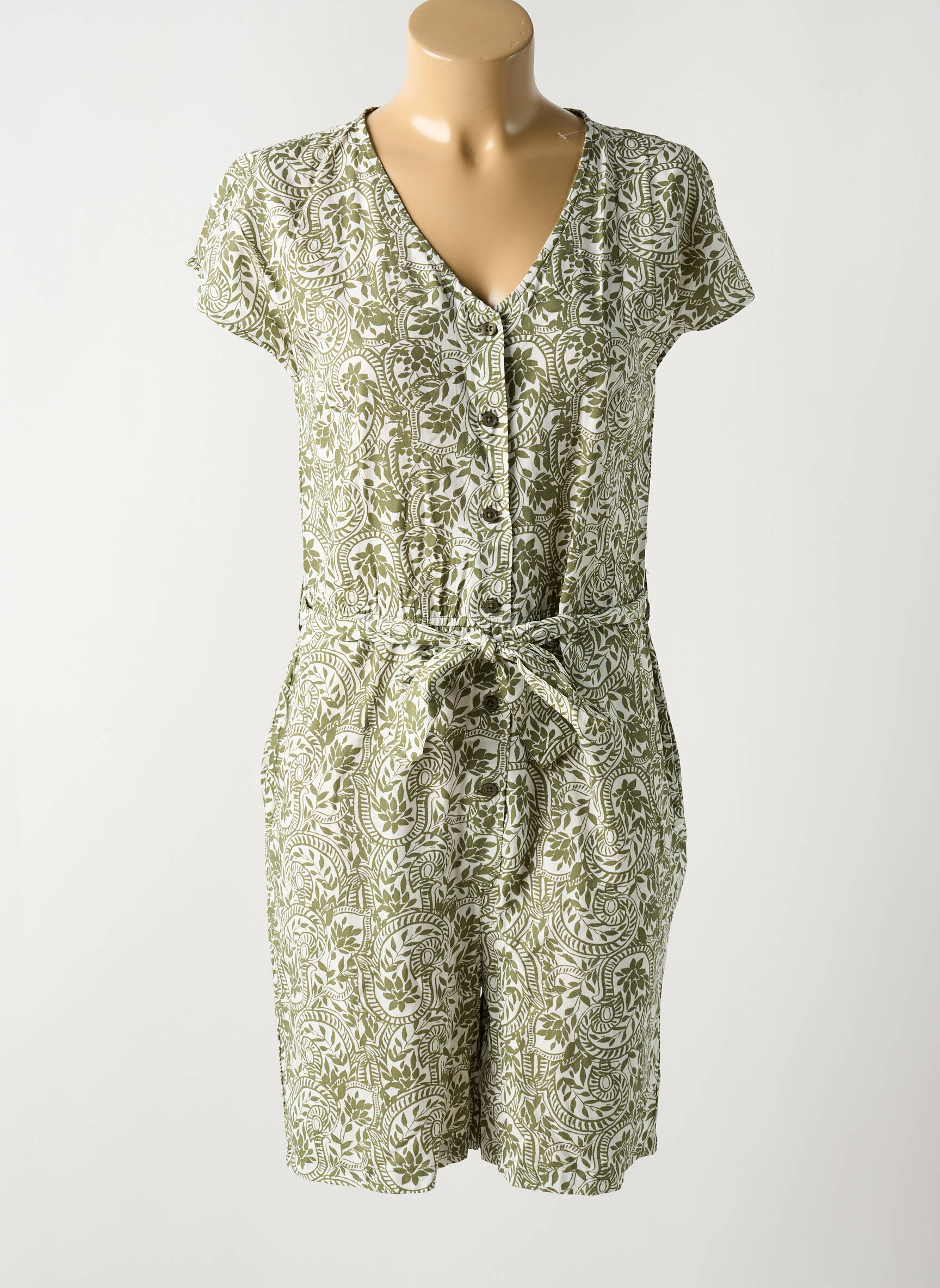 Salopetă Scurtă Cream Verde Mâneci Scurte
