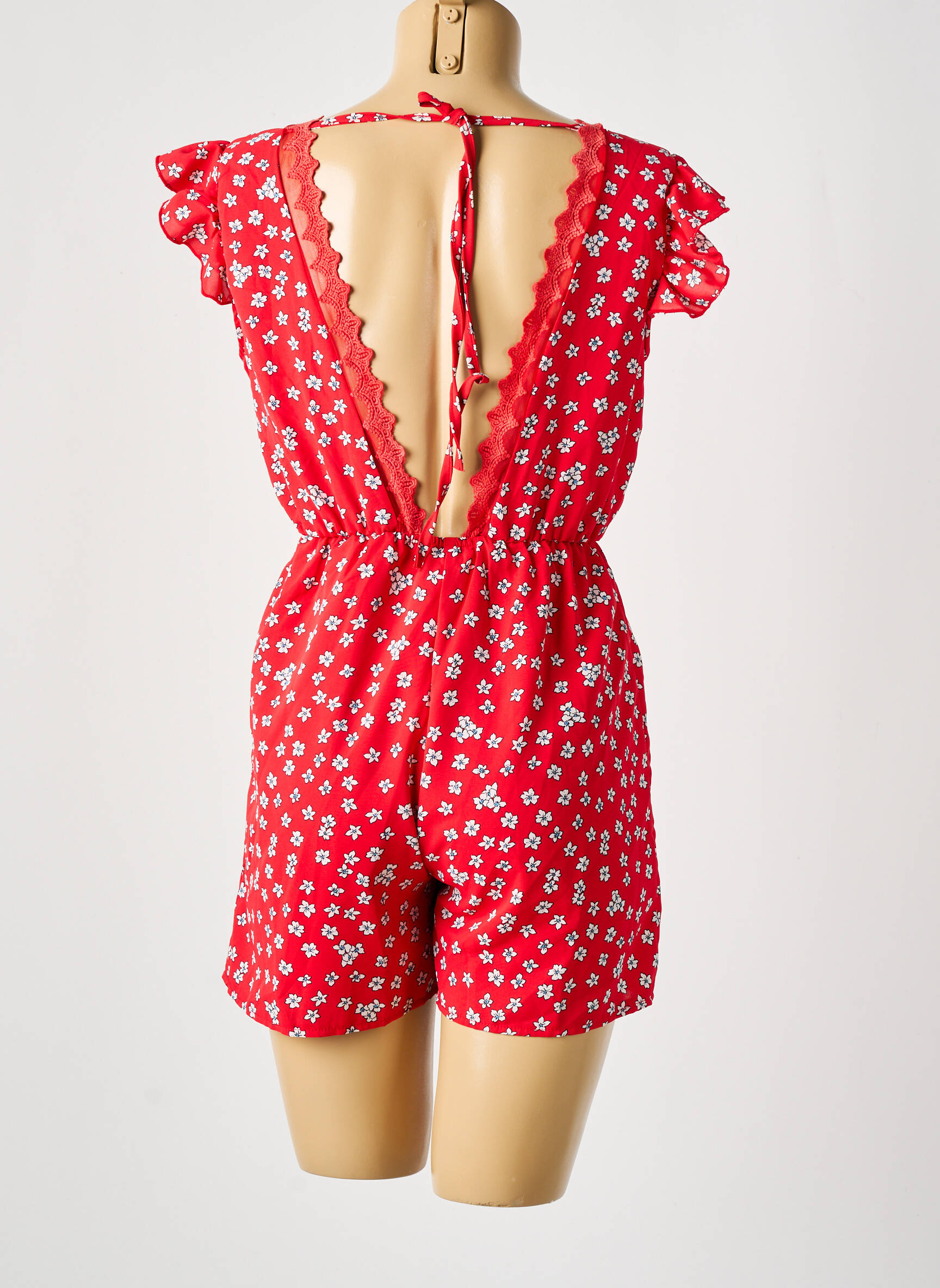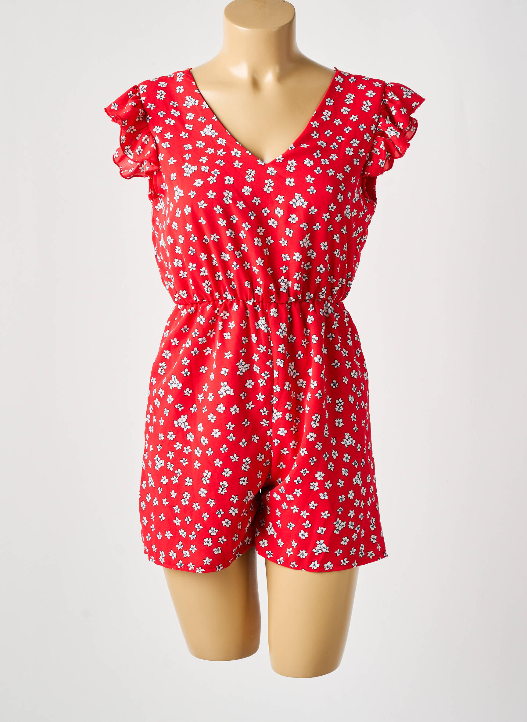 Salopetă Scurtă Lilie Rose Roșu Mâneci Scurte