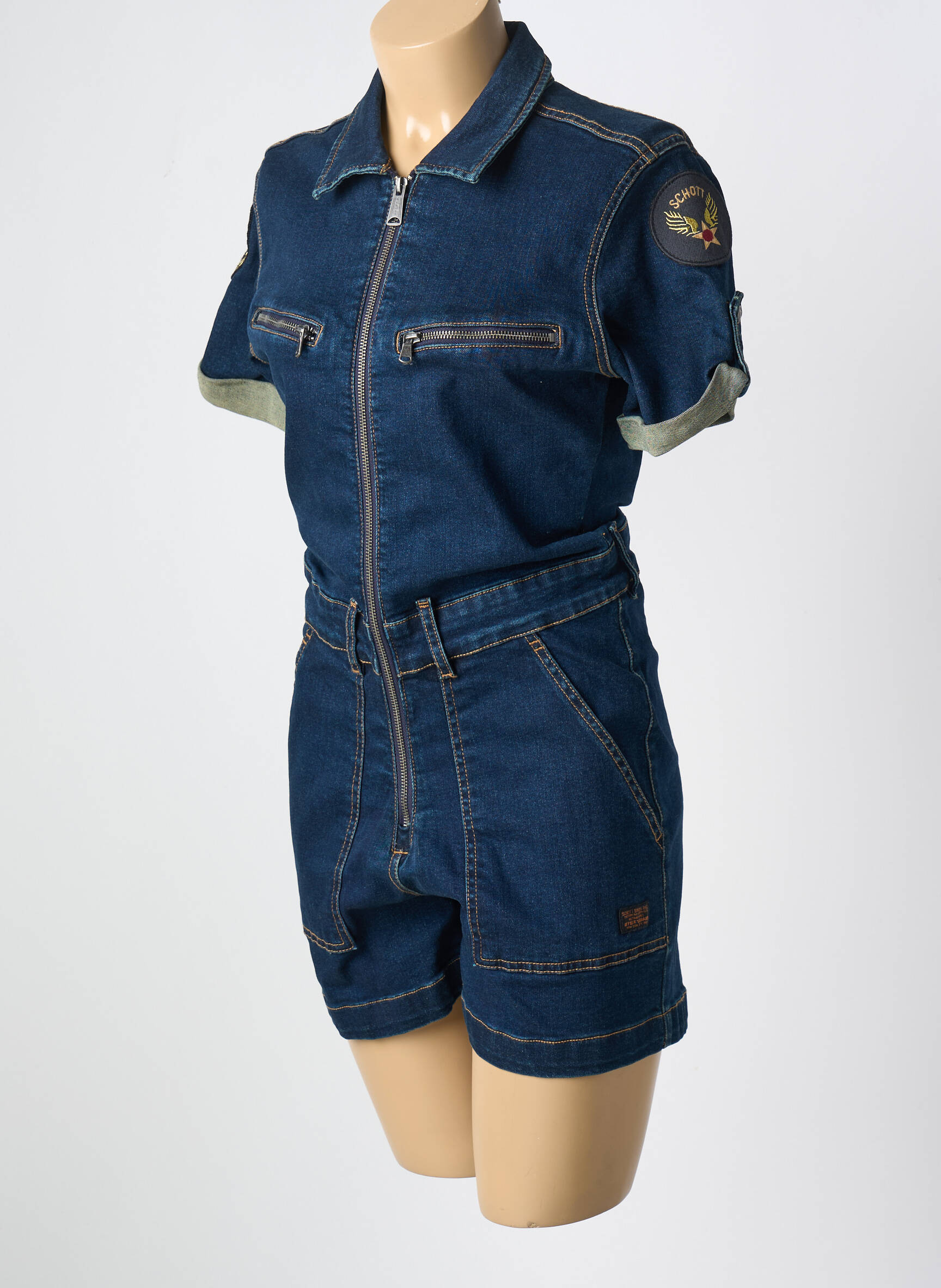 Salopetă Scurtă Schott Albastru Mâneci Scurte