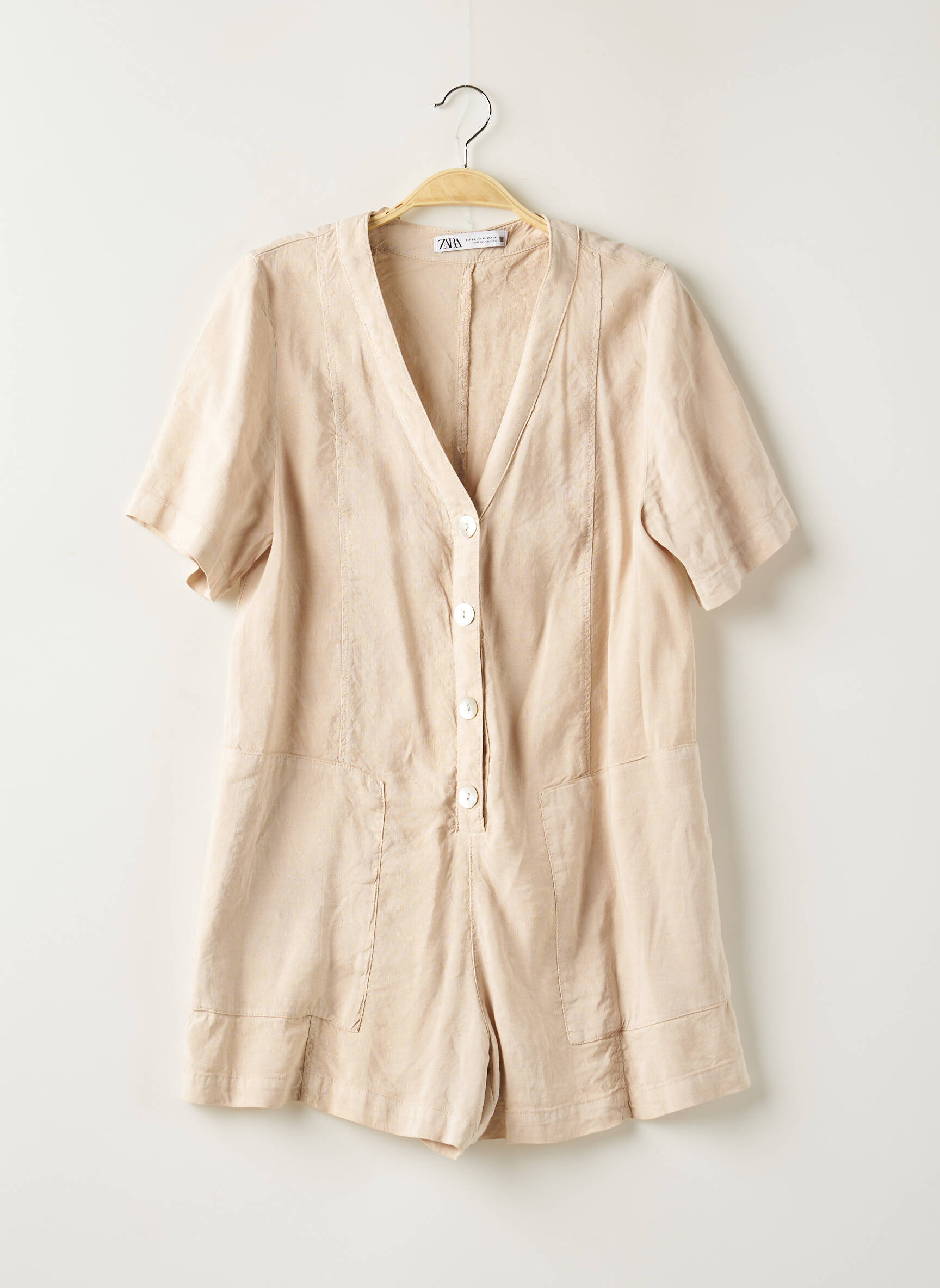 Salopetă Scurtă Zara Bej Mâneci Scurte