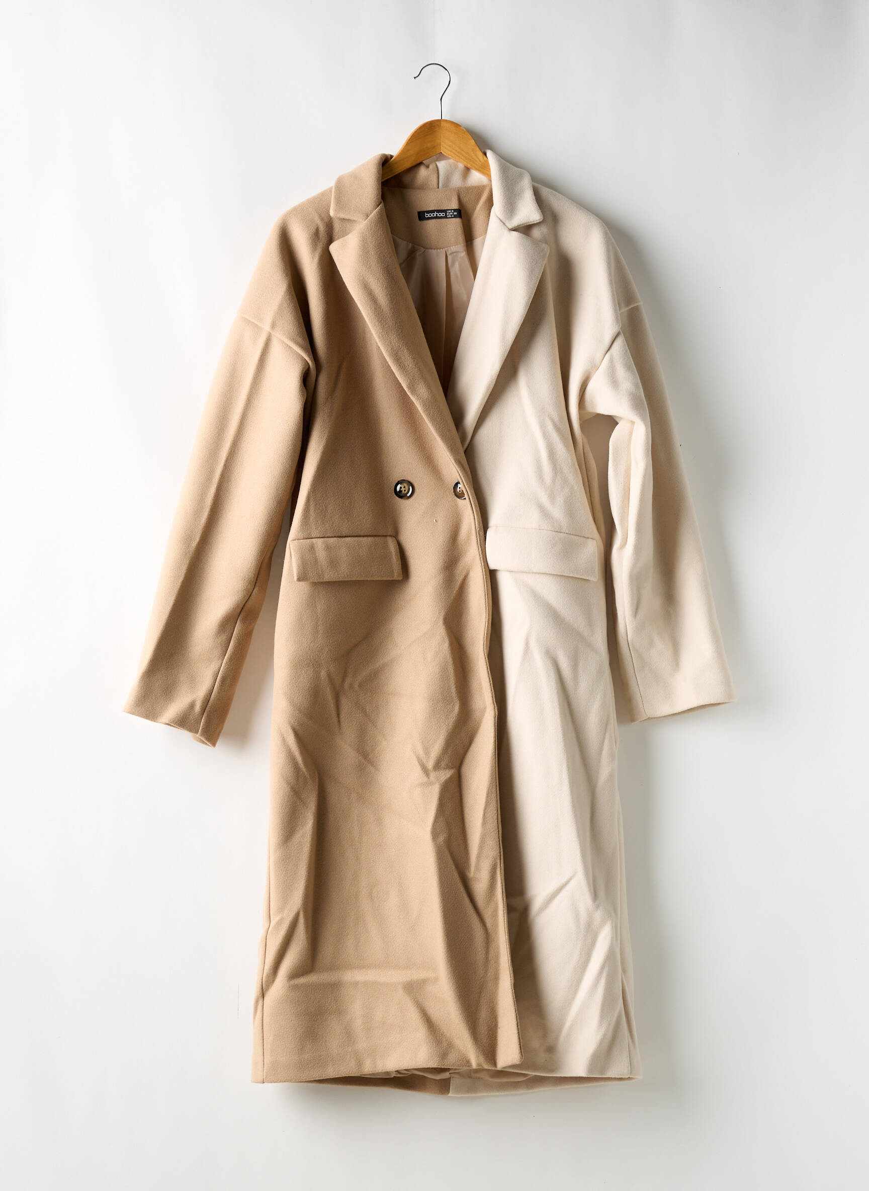 Palton Lung Boohoo Bej Fără Glugă