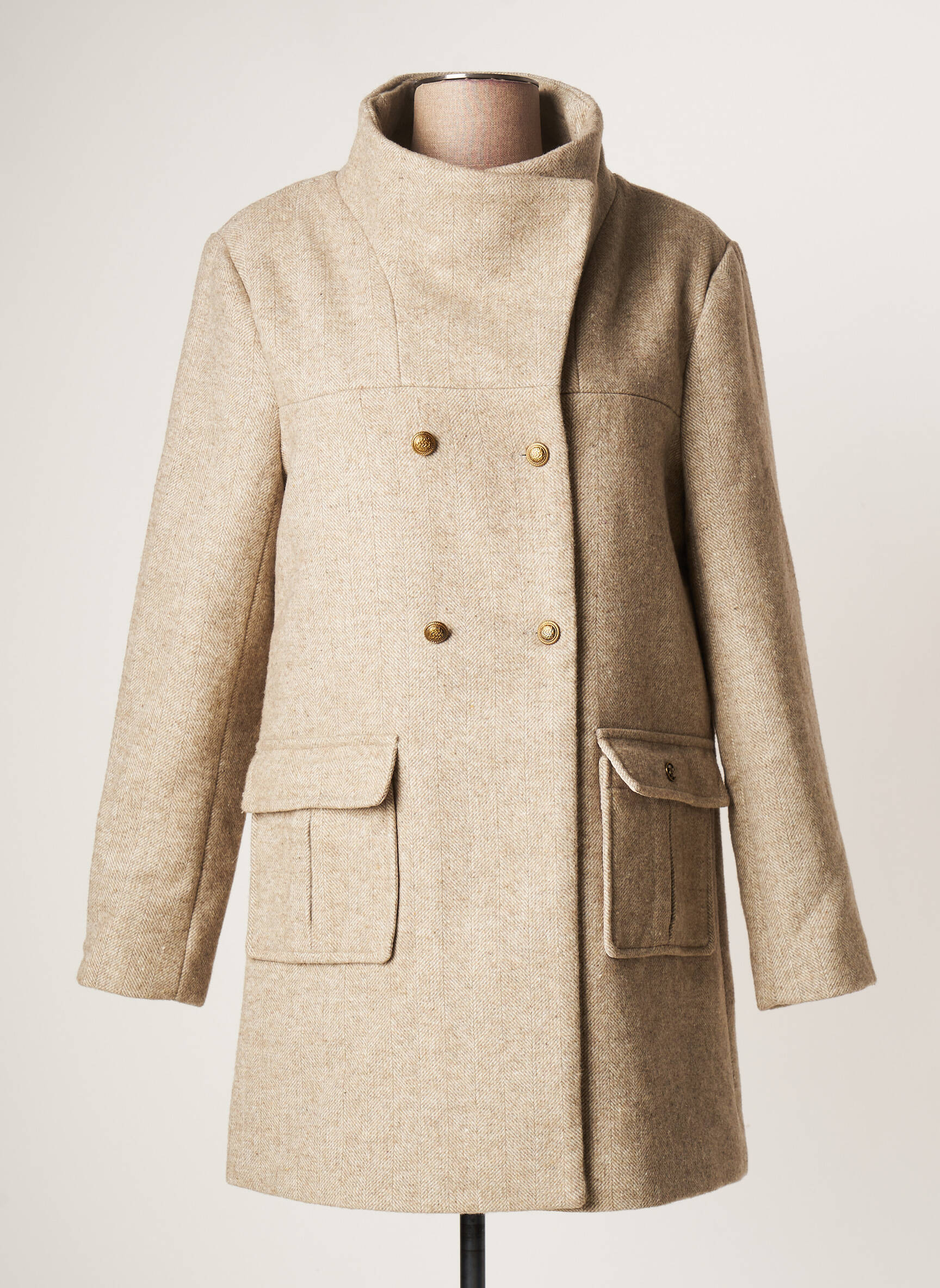 Palton Lung Chattawak Bej Fără Glugă