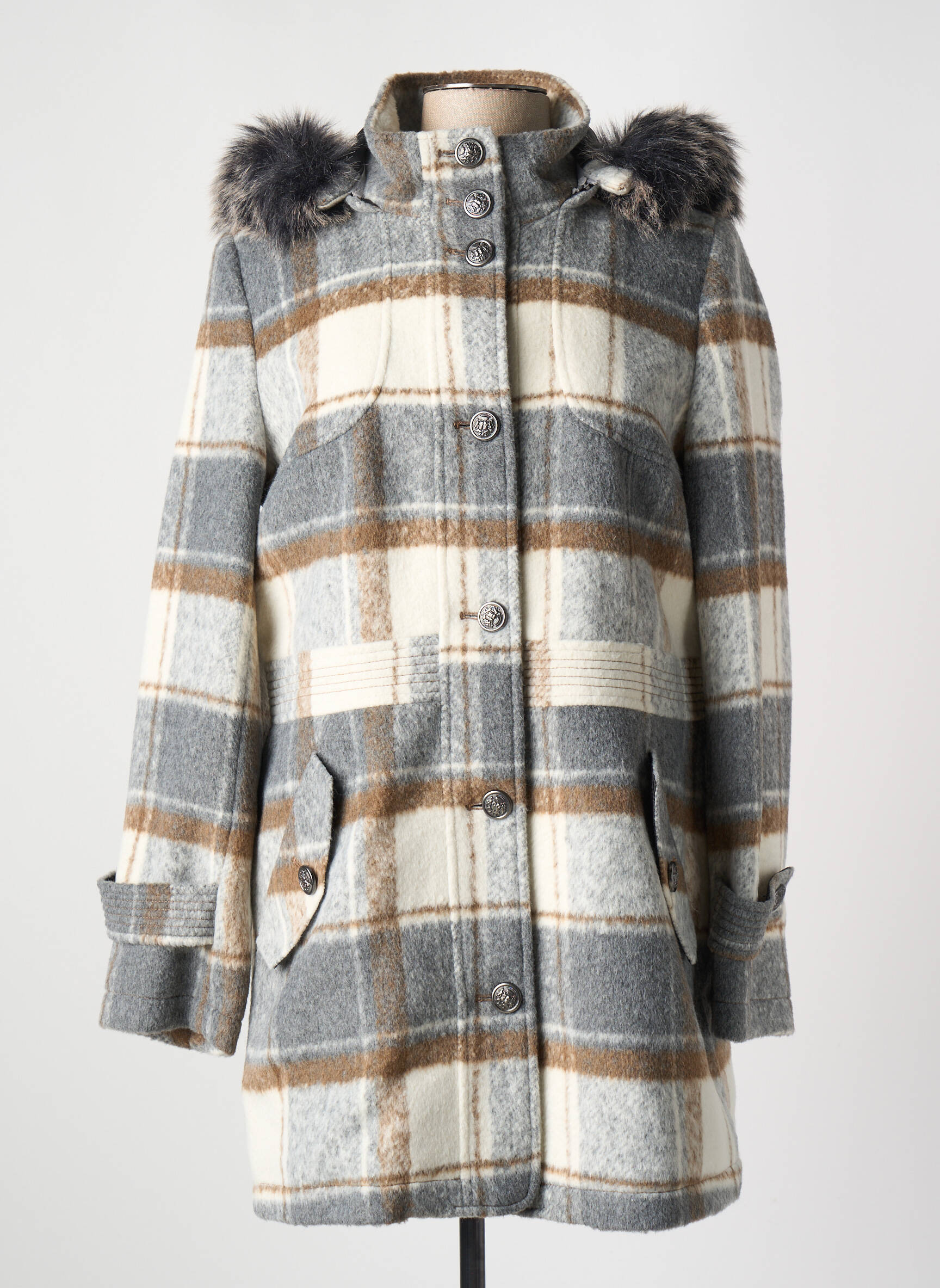 Palton Lung Christine Laure Gri Cu Glugă