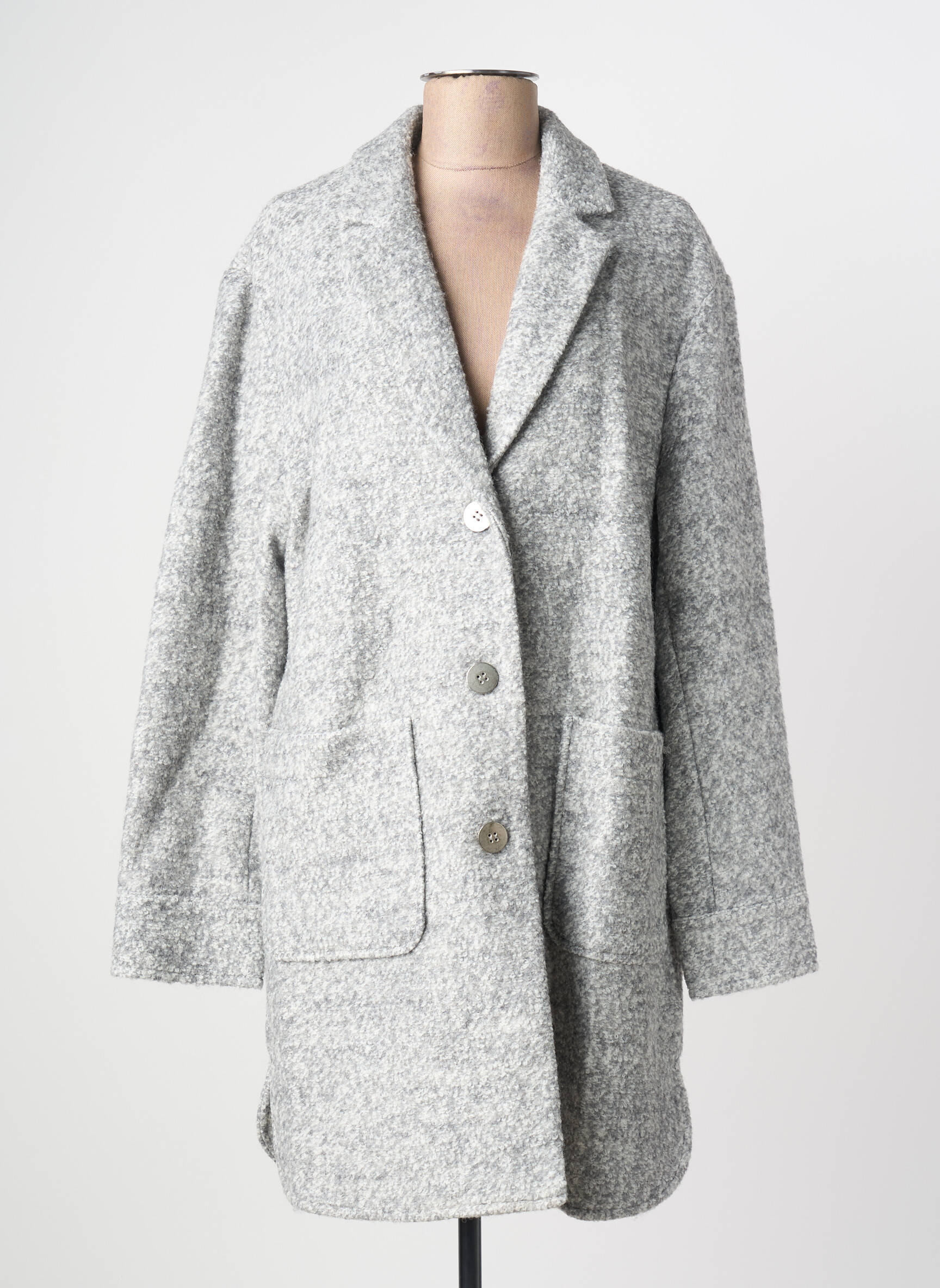 Palton Lung Heine Gri Fără Glugă