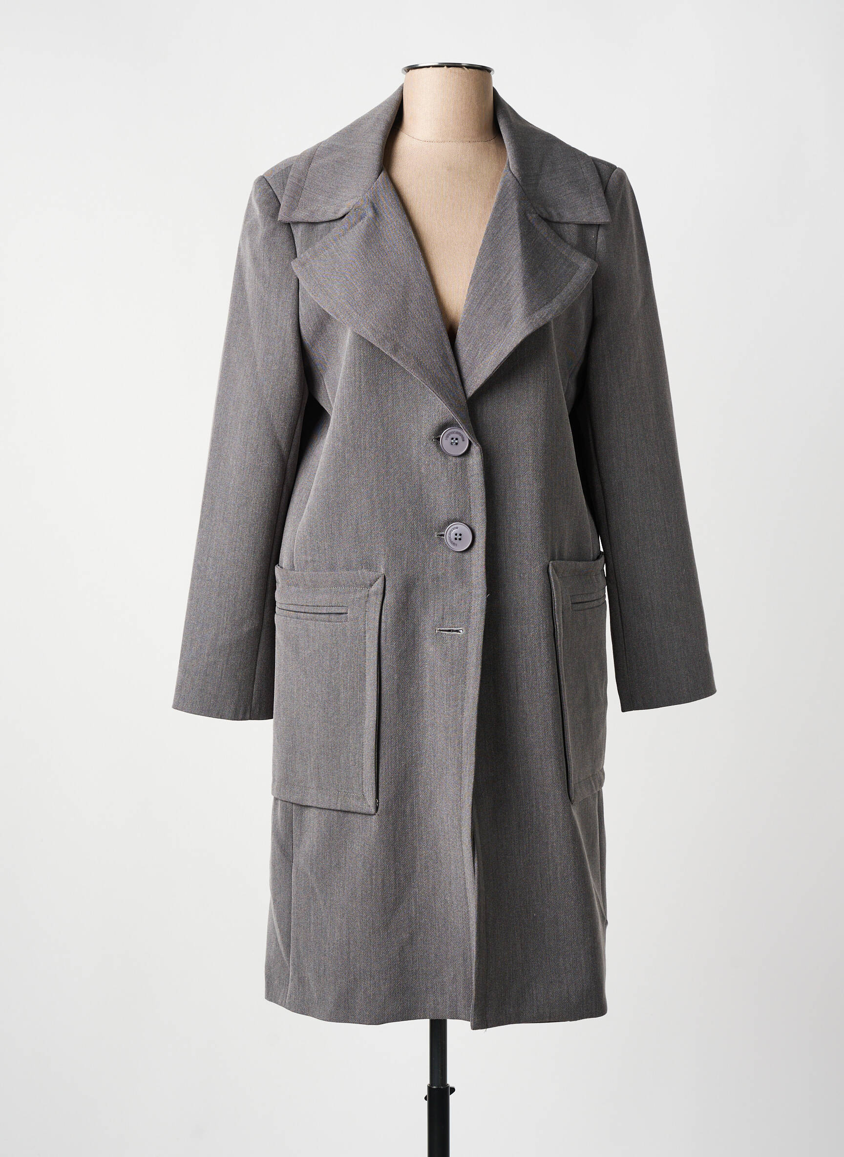 Palton Lung Hippocampe Gri Fără Glugă