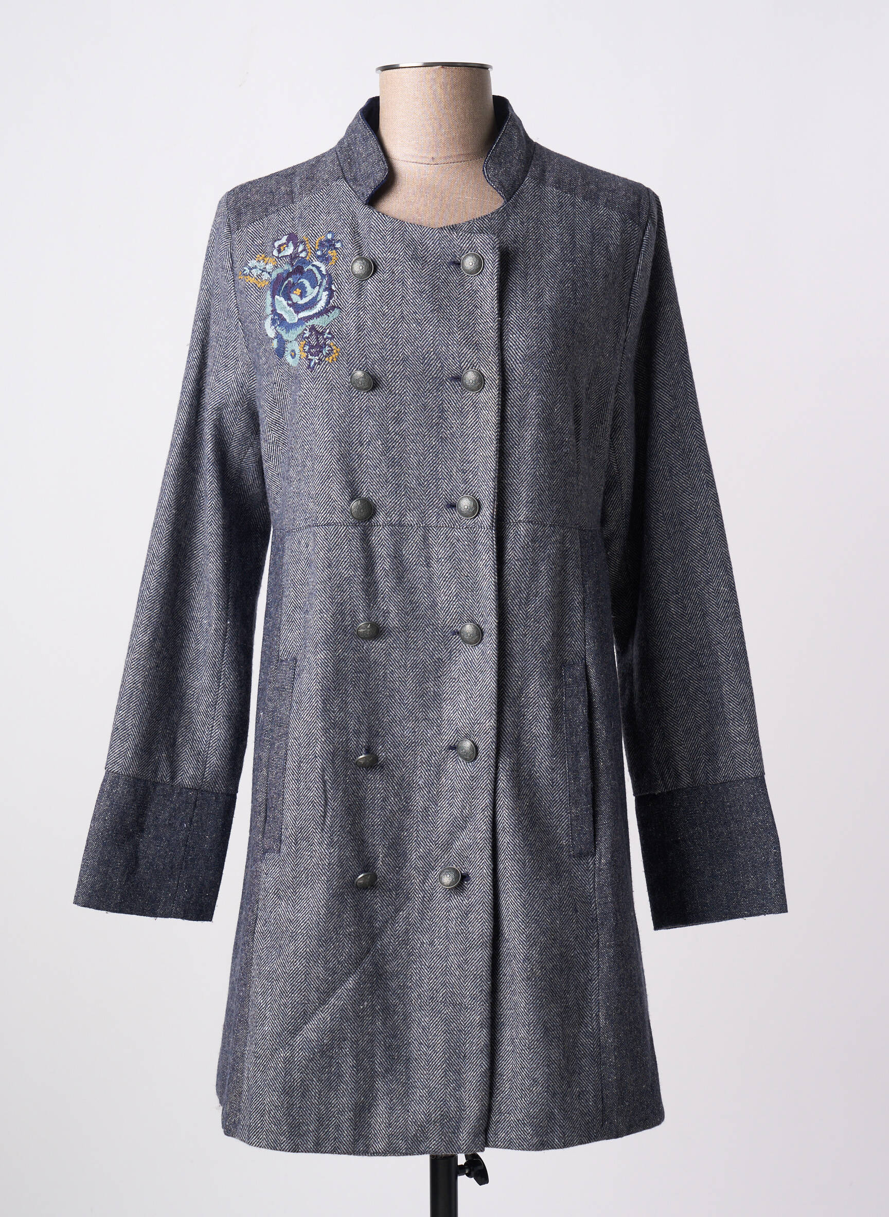 Palton Lung La Fiancee Du Mekong Albastru Fără Glugă