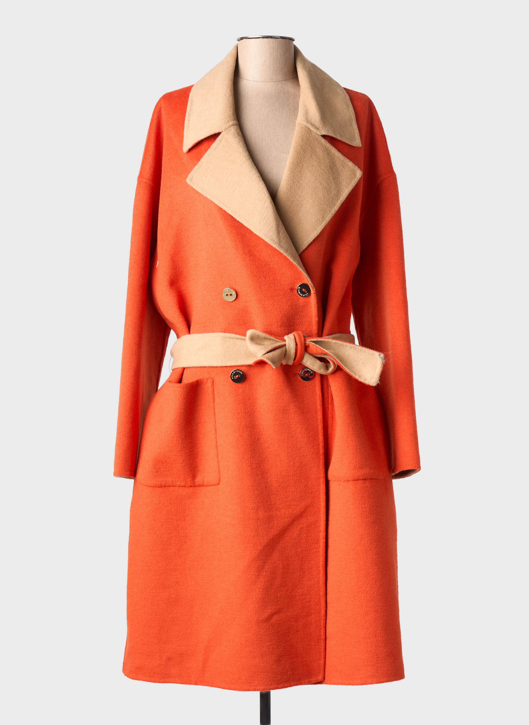 Palton Lung Lola Casademunt Portocaliu Fără Glugă
